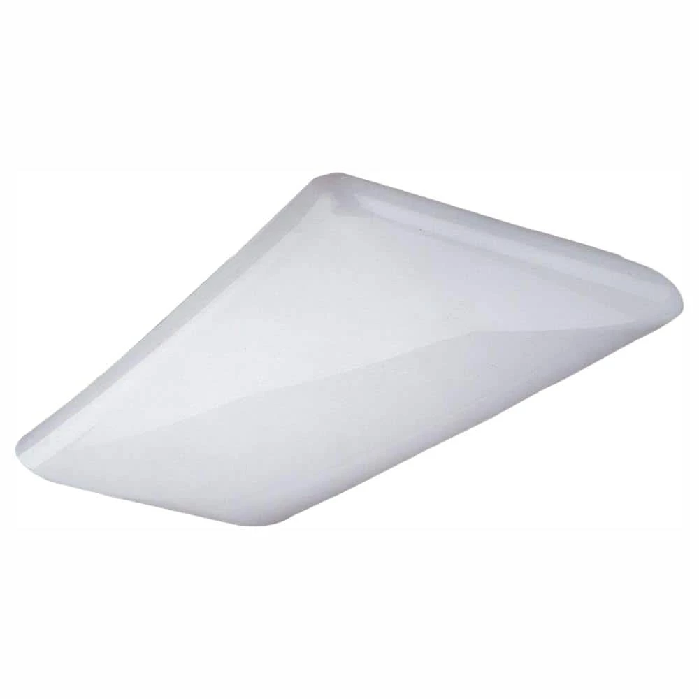 This sturdy 2-Light 17-Watt T8 modern wraparound is manufactured with 20-Gauge steel and a white cloud design acrylic lens. Features 120-Volt energy-saving electronic ballast, a damage-resistant acrylic lens that blocks 80% of UV at 400 nm and Lens-Locks. Comes with 3 push-in wire connectors for easy installation.