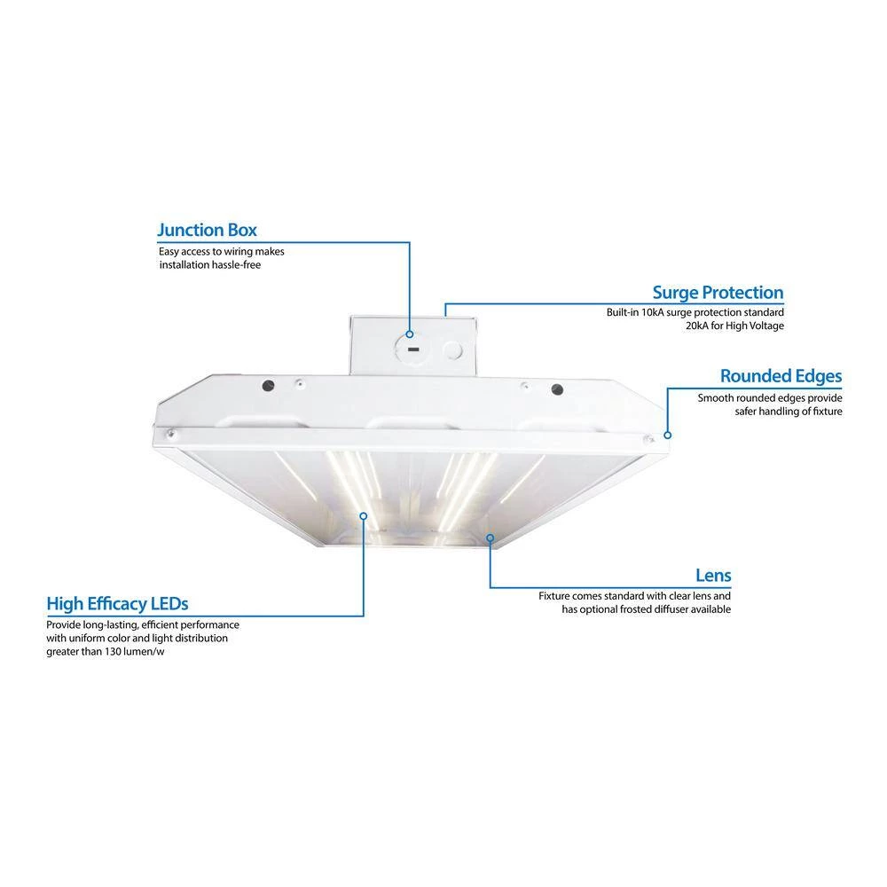 The NICOR HBL3 is the latest version LED High Bay built to exceed performance expectations with a slim new design. This is the ideal fixture for replacing outdated metal halide and fluorescent high bay systems. The HBL3 features the latest in LED technology to provide energy efficiency with an output surpassing 130 Lumens per Watt, meeting DLC Premium. The durable steel constructed, powder coated, and vented frame with acrylic lens is designed to outlast the competition with an unprecedented 122,000 hour lifespan. That’s over 41 years if used for 8 hours per day, every day of the year (and no bulbs to change. Ever, The HBL3 is available in both 4000K and 5000K color temperatures, featuring excellent color rendering and uniform lighting without hotspots. The HBL3 is also equipped with built-in 0-10-Volt Dimming (full-range) and 10kA surge protection. Includes V-Hook and Chain mounting system to make set-up a breeze. The HBL3 is designed for heights over 15-ft. making it the perfect solution for garages, workshops, barns, warehouses, gymnasiums, and other commercial or storage facilities. Comes with everything you need for installation directly out of the box. The HBL3 is Damp-Location rated and protected by NICORs 5-Year Limited Warranty.