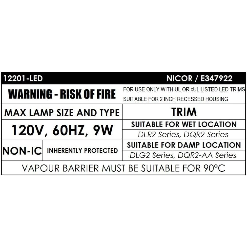 This NICOR 12201-LED is a Galvanized Steel 2 in. New Construction LED Housing designed for 2 in. LED Recessed Downlights and LED Retrofits. It features a universal IDEAL connector that allows for quick, snap-in connection to NICOR LED downlights and helps improve light efficiency and quality. It’s suitable for residential and commercial applications and is Energy Star Rated, Title 24 Compliant, and Wet Location rated when used with Wet Location Rated Downlights. Comes protected with NICOR’s 1 Year Limited Warranty.