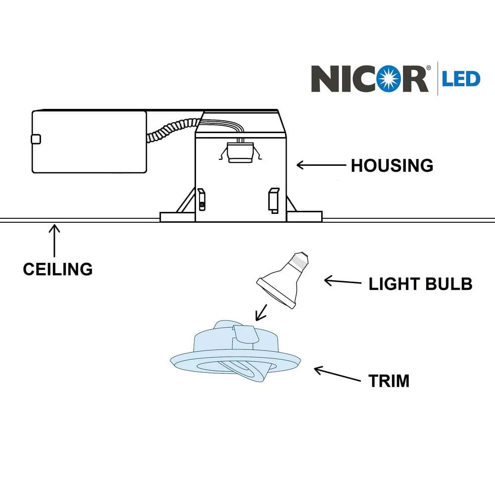The quality steel construction on NICOR’s 4 in. gimbal trim ensures a durable product for years to come. The gimbal ring trim is adjustable to 30° and allows you to brighten up those hard to reach areas of the home or use it for directional accent lighting on that perfect painting or sculpture. Each trim comes ready to install with the included mounting clips/springs attached.