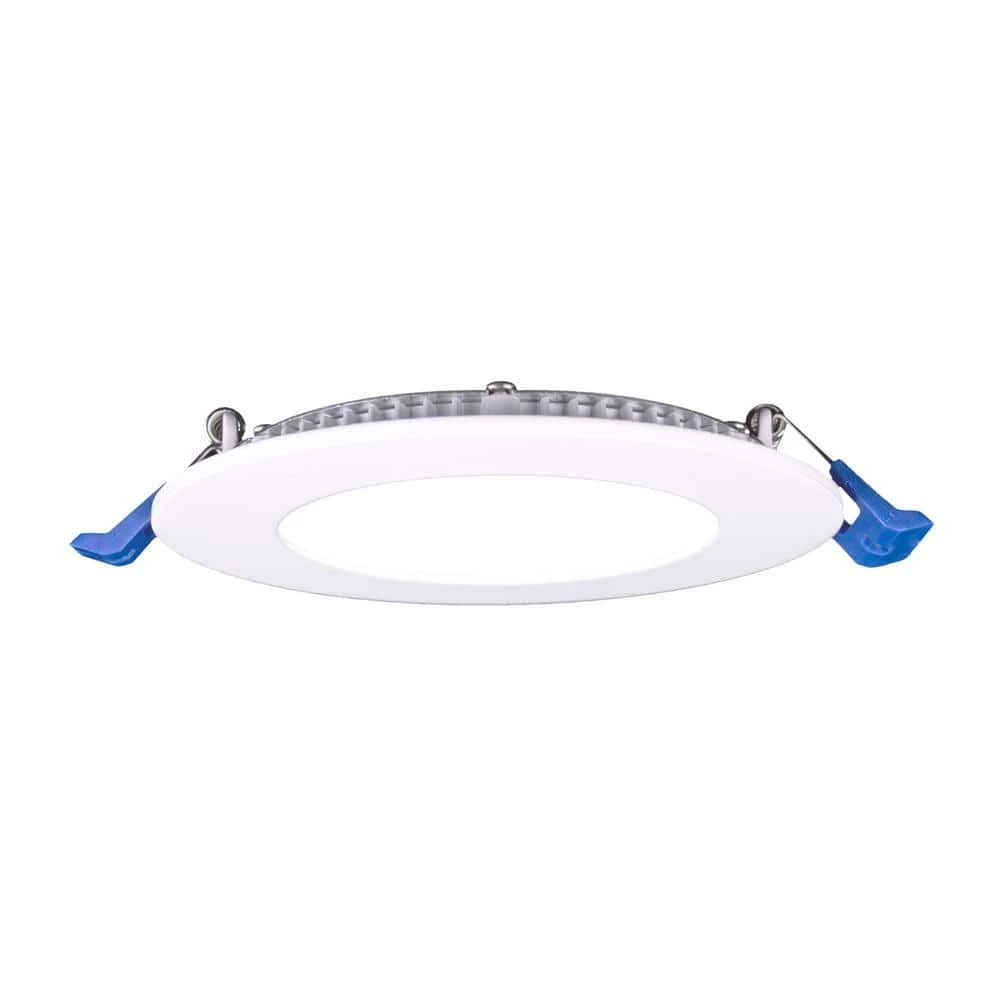 The DLE4 Edge Lit 4 in. Round LED Downlight creates an attractive visual aesthetic with a low profile that’s incredibly easy to install. The edge-lit technology uses a reflective light guide panel that disperses light through a diffused lens, making it a practical, economical and energy efficient solution with high performance. This high-performance downlight features 96 CRI, with an R9 value exceeding 50, making the DLE4 among the highest rated light fixtures in terms of light quality. Installation does not require a recessed housing, only a simple 4.25 in. in diameter cut-out in the ceiling using the provided template. The ultra-thin fixture depth (less than 1 in.) and off-board driver (included) allows for a more flexible installation and increased lifetime with superior heat management. The DLE4 features adjustable spring-loaded retention tabs for a secure fit, eliminating the need for a J-box or recessed housing. Adding light in tight spaces such as living rooms, hallways, bathrooms, basements, entryways, porches and utility closets just got easier. The DLE4 is Title 24 Compliant (except 5000K version), ENERGY STAR rated, Insulation Contact rated (IC-rated), Airtight, Damp-location rated and is protected by NICOR’s 5-Year Limited Warranty.