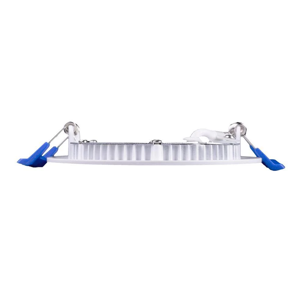 The DLE4 Edge Lit 4 in. Round LED Downlight creates an attractive visual aesthetic with a low profile that’s incredibly easy to install. The edge-lit technology uses a reflective light guide panel that disperses light through a diffused lens, making it a practical, economical and energy efficient solution with high performance. This high-performance downlight features 96 CRI, with an R9 value exceeding 50, making the DLE4 among the highest rated light fixtures in terms of light quality. Installation does not require a recessed housing, only a simple 4.25 in. in diameter cut-out in the ceiling using the provided template. The ultra-thin fixture depth (less than 1 in.) and off-board driver (included) allows for a more flexible installation and increased lifetime with superior heat management. The DLE4 features adjustable spring-loaded retention tabs for a secure fit, eliminating the need for a J-box or recessed housing. Adding light in tight spaces such as living rooms, hallways, bathrooms, basements, entryways, porches and utility closets just got easier. The DLE4 is Title 24 Compliant (except 5000K version), ENERGY STAR rated, Insulation Contact rated (IC-rated), Airtight, Damp-location rated and is protected by NICOR’s 5-Year Limited Warranty.