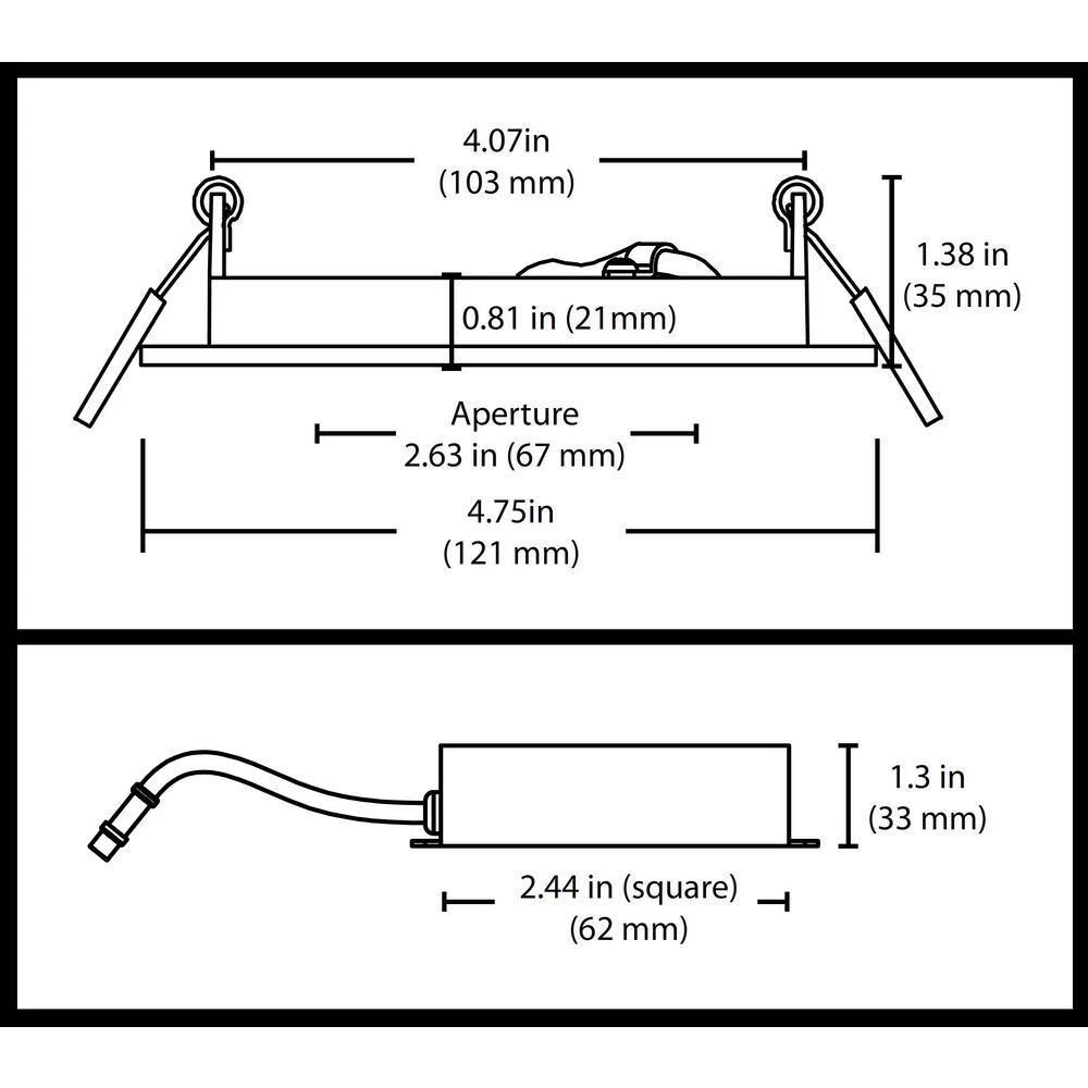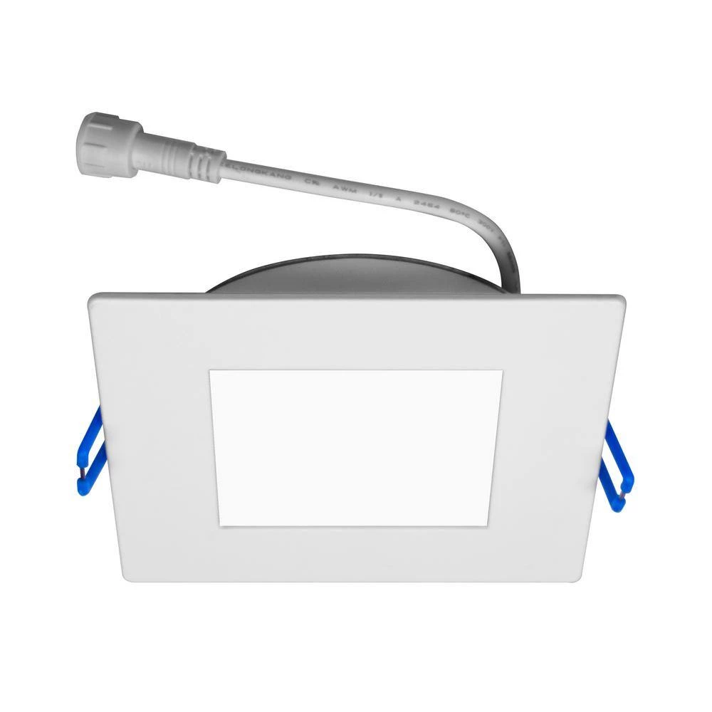 The DLE4 Edge Lit 4 in. Square LED Downlight creates an attractive visual aesthetic with a low profile that’s incredibly easy to install. The edge-lit technology uses a reflective light guide panel that disperses light through a diffused lens, making it a practical, economical and energy efficient solution with high performance. This high-performance downlight features 93 CRI, with an R9 value exceeding 50, making the DLE4 among the highest rated light fixtures in terms of light quality. Installation does not require a recessed housing, only a simple 4.25 in. in diameter cut-out in the ceiling using the provided template. The ultra-thin fixture depth (less than 1 in.) and off-board driver (included) allows for a more flexible installation and increased lifetime with superior heat management. The DLE4 features adjustable spring-loaded retention tabs for a secure fit, eliminating the need for a J-box or recessed housing. Adding light in tight spaces such as living rooms, hallways, bathrooms, basements, entryways, porches and utility closets just got easier. The DLE4 is Title 24 Compliant (except 5000K version), ENERGY STAR rated, Insulation Contact rated (IC-rated), Airtight, Damp-location rated and is protected by NICOR’s 5-Year Limited Warranty.