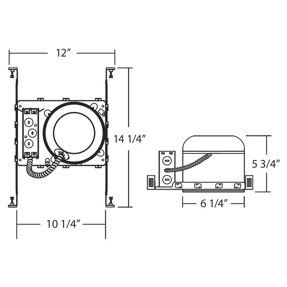 This NICOR 17014A-LED-ID is an Aluminum 6 in. New Construction LED Housing designed for 6 in. LED Recessed Downlights and LED Retrofits. The Airtight and Insulation Contact Rated Housing (IC Allows for direct contact with insulation) helps keep your home insulated and Energy Efficient. It features a universal IDEAL connector that allows for quick, snap-in connection to NICOR LED downlights and helps improve light efficiency and quality. It’s suitable for residential and commercial applications and features Integral Thermal Guards that protect against Overheating (usually due to using an incorrect-Wattage or bulb). The 17014A-LED-ID is also Wet Location Rated when used with Wet Location Rated Downlights and Trims. The housing adjusts from 0.5 in. to 1.5 in. to accommodate ceiling drywall thickness and its 5.75 in. height allows it to be used in 2 in. x 6 in. joist construction. Comes protected with NICOR’s 1 Year Limited Warranty.
