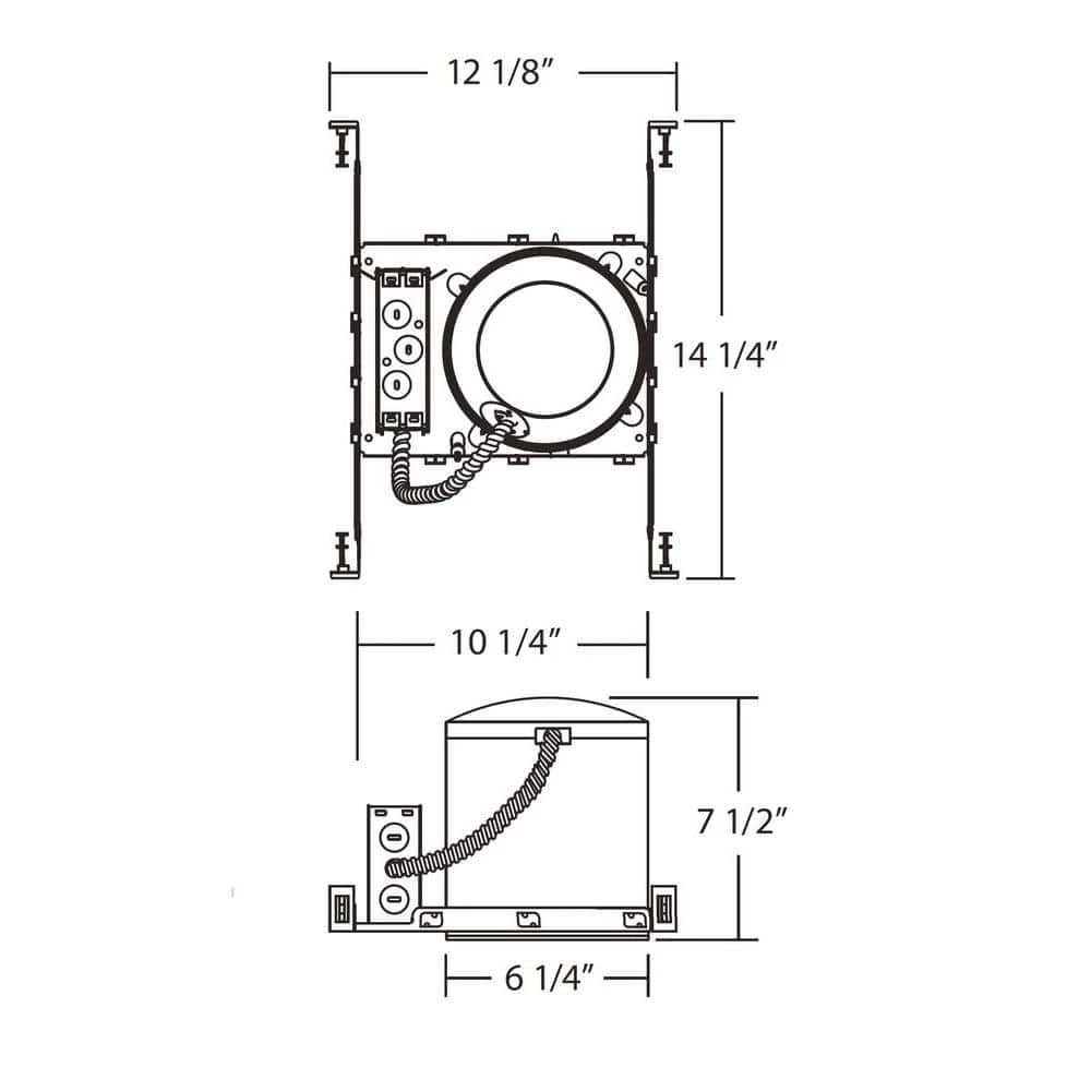 This 6 in. line-Voltage aluminum housing is rated for non-insulation contact. This housing is suitable for new construction in both residential and commercial applications. Features thermal protector guards, adjustable hanger bars, adjustable socket bracket and ideal push-in wire connectors for easy installation.