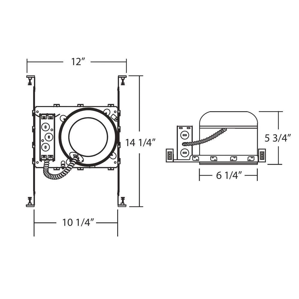 This NICOR 17004 is an Aluminum 6-inch Shallow New Construction Housing designed for 6 inch LED Recessed Downlights, LED Retrofits, and Traditional Trims of all sorts. It’s suitable for residential and commercial applications and features Integral Thermal Guards that protect against Overheating (usually due to using an incorrect wattage or bulb). The 17004 adjusts from 0.5 to 1.5 to accommodate ceiling drywall thickness and its 5.75 height allows it to be used in 2 in. x 6 in. joist construction. Comes protected with NICORs 1-year limited warranty.