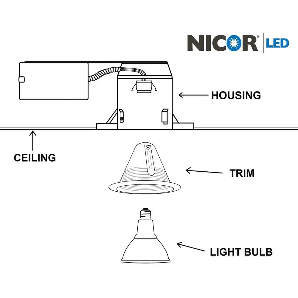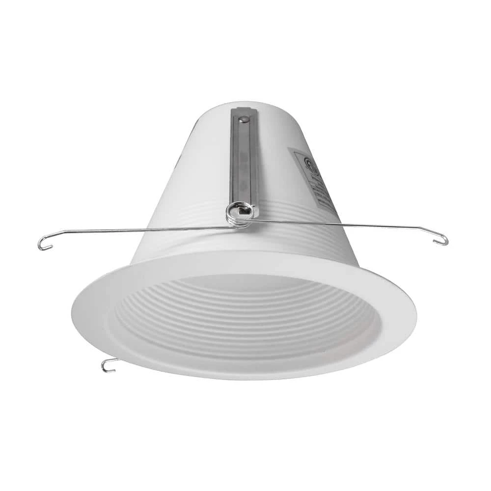 The quality steel construction on NICOR’s 6 in. white baffled trim ensures a durable product for years to come. This airtight trim compliments NICOR’s airtight housings to ensure insulation standards and improved energy efficiency. Each trim comes ready to install with the included mounting clips/springs attached.