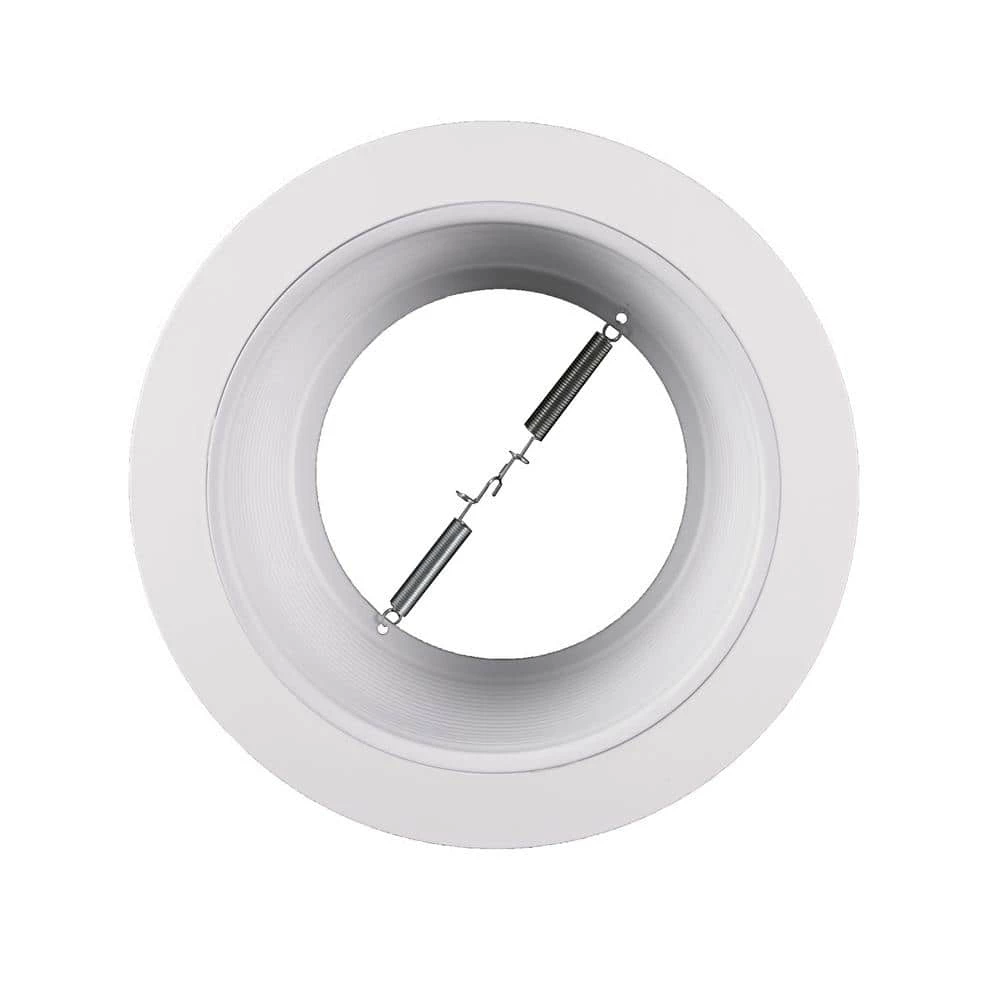 The quality steel construction on NICOR’s 6 in. trims ensures a durable product for years to come. The 6 in. aperture and 5 in. base aperture allows for the use of larger lamps; up to BR40/PAR38. Each trim comes ready to install with the included mounting clips/springs attached.