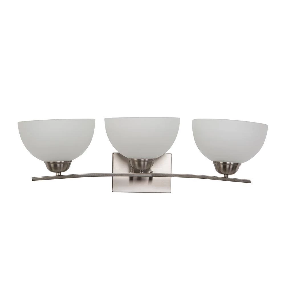 Rejuvenate your bathroom decor with this 3-light vanity fixture from the Alta Peak Collection by Yosemite Home Decor. Item Code #107-3V-AWSS, this 3-light vanity is refined and contemporary. It comes in a Satin Steel finish with Acid Washed glass shades. This piece is versatile and can be hung as an uplight or downlight depending on your desired style. It requires (3) incandescent medium (E26) base bulbs at a maximum of 100-Watt. A 1-year limited warranty is included at the time of purchase for the parts. Its dimensions are 8.5 in. H x 24 in. W x 6 in. D and weighs 5.2 lbs. Also available in a Coffee finish.