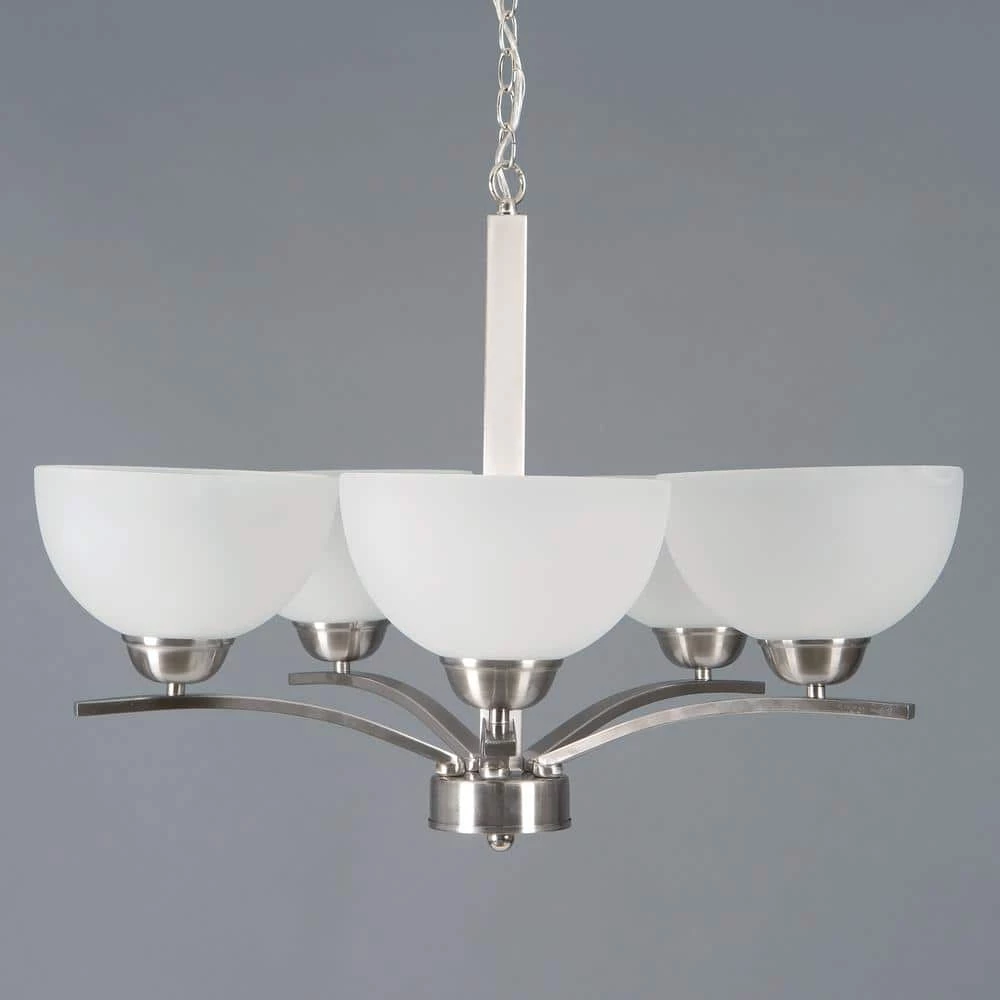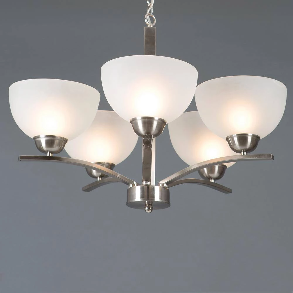 The Alta Peak Collection by Yosemite Home Decor has the perfect chandelier for your home. Item code #107-5U-AWSS, this gorgeous 5-light chandelier in a Satin Steel finish is adorned with Acid Washed glass shades. Equipped with 4 ft of chain and 10 ft. of wire, this chandelier is easy to install and comes partially assembled. It requires (5) incandescent medium (E26) base bulbs at a maximum of 60-Watt. A 1-year limited warranty is included at the time of purchase for the parts. Its dimensions are 18.5 in. H x 21 in. W x 21 in. D and weighs 9.92 lbs. Also available in a Coffee Brown finish.