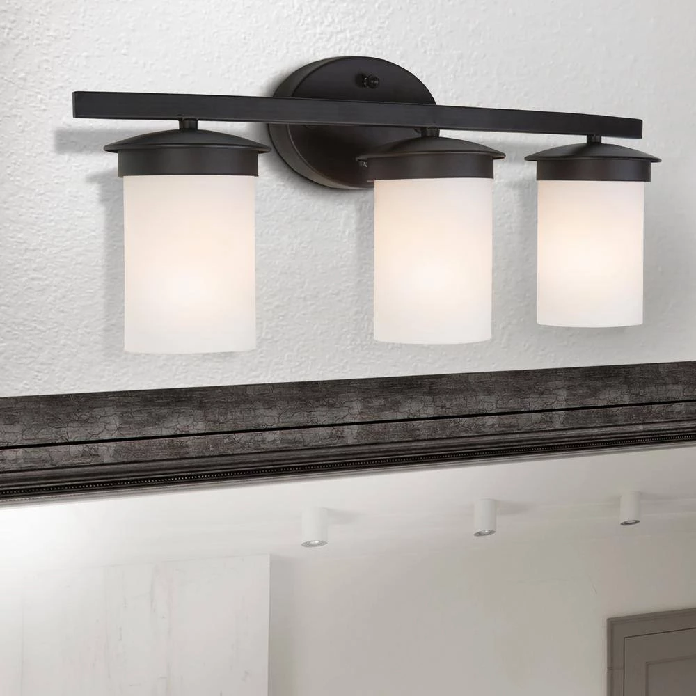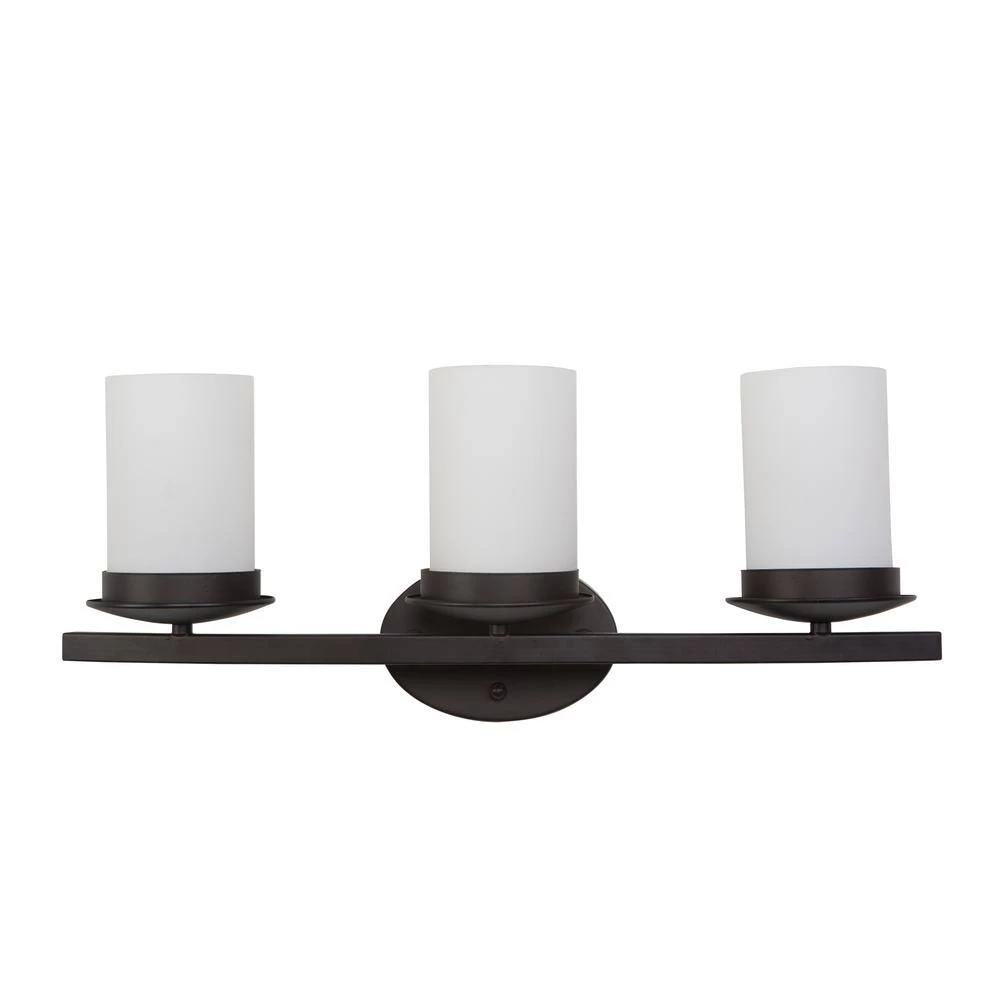 The Columbia Rock Collection by Yosemite Home Decor features a line crafted in sleek elegance, simplistic grace with complementary designs. The 3-light vanity in Oil Rubbed Bronze finish with a matte White Opal cylindrical glass shade will update your bathroom with its sophisticated and simple design. It is versatile and can be hung as an up light or downlight to suit your desired style. Constructed of steel this vanity light is durable and easy to care for. It requires (3) incandescent medium (E26) base bulbs at a maximum of 100-Watt. A limited 1-year warranty is included on all parts. Its dimensions 6.75 in. L x 23.5 in. W x 9.37 in. H and weighs 5.24 lbs. Item Code #101-3V-ORB.