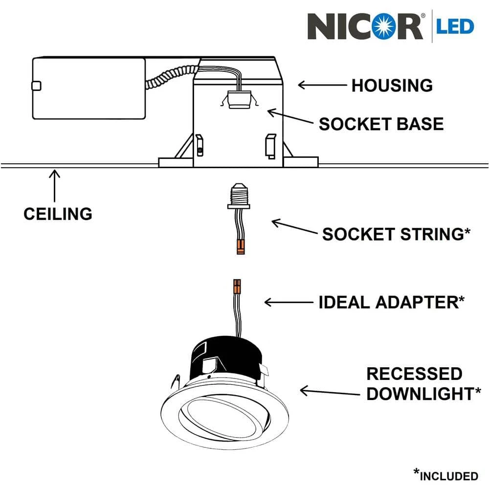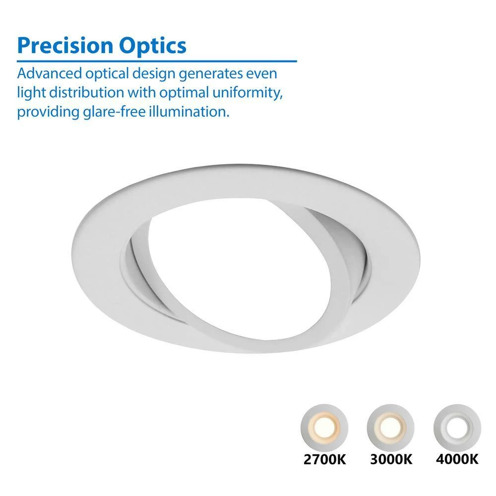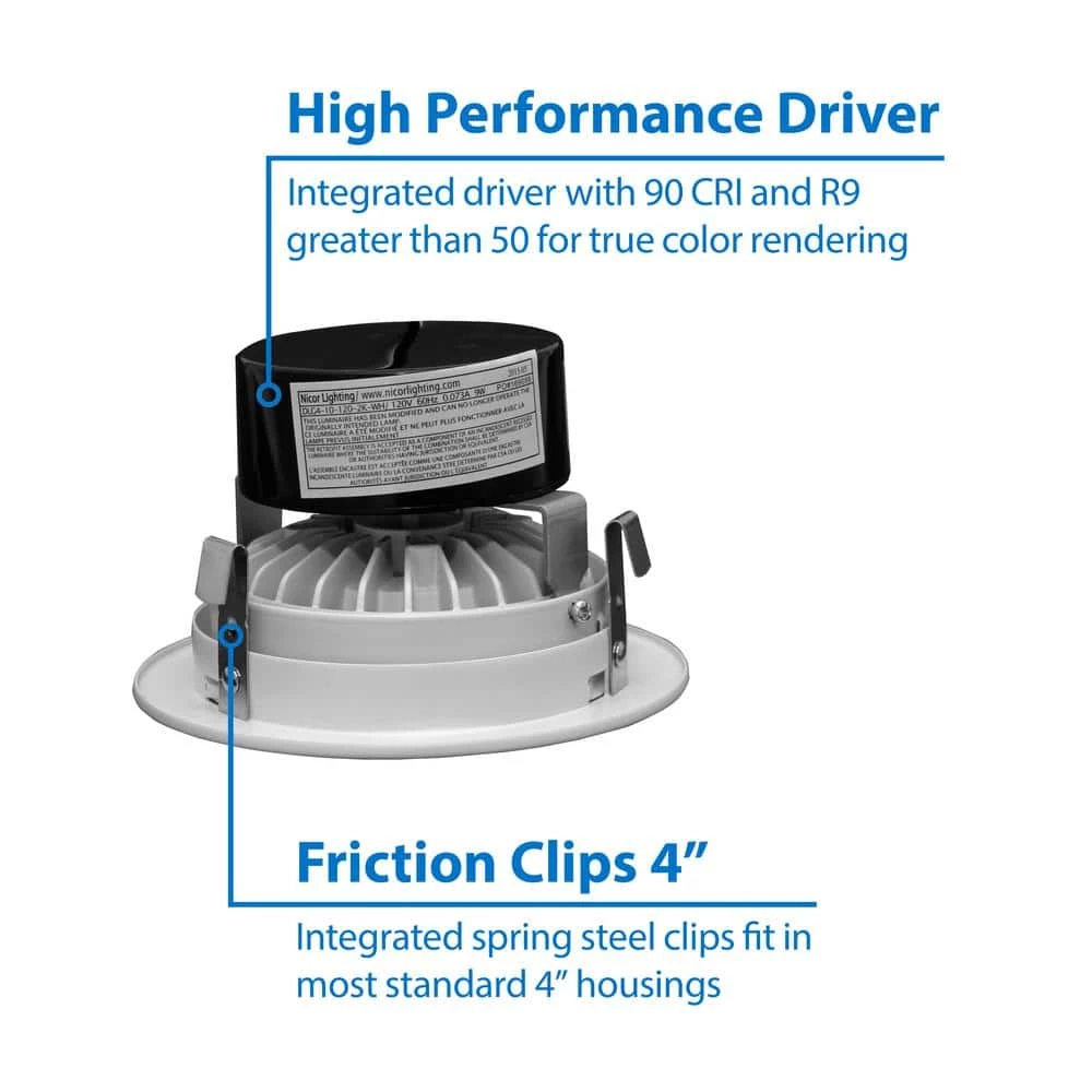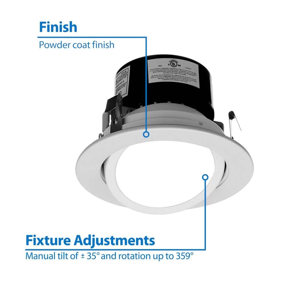 The new NICOR DLG4 is the perfect 4 in. Gimbal LED Downlight for directional accent lighting. The DLG4 produces 612 Lumens while drawing only 9 Watts of energy, which is spectacular in terms of Lumens per Watt. Its easy to use twist-and-turn design allows for fine adjustment of the Gimbal position. The 360° of rotation and 35° of adjustable tilt in both directions makes the DLG4 suitable for sloped ceilings and wall wash. The sleek design enhances any interior space to brighten up those hard to light areas, or accenting that perfect piece of art with its adjustable directional lighting. The DLG4 features flush mounting, and aesthetic appeal sure to please.