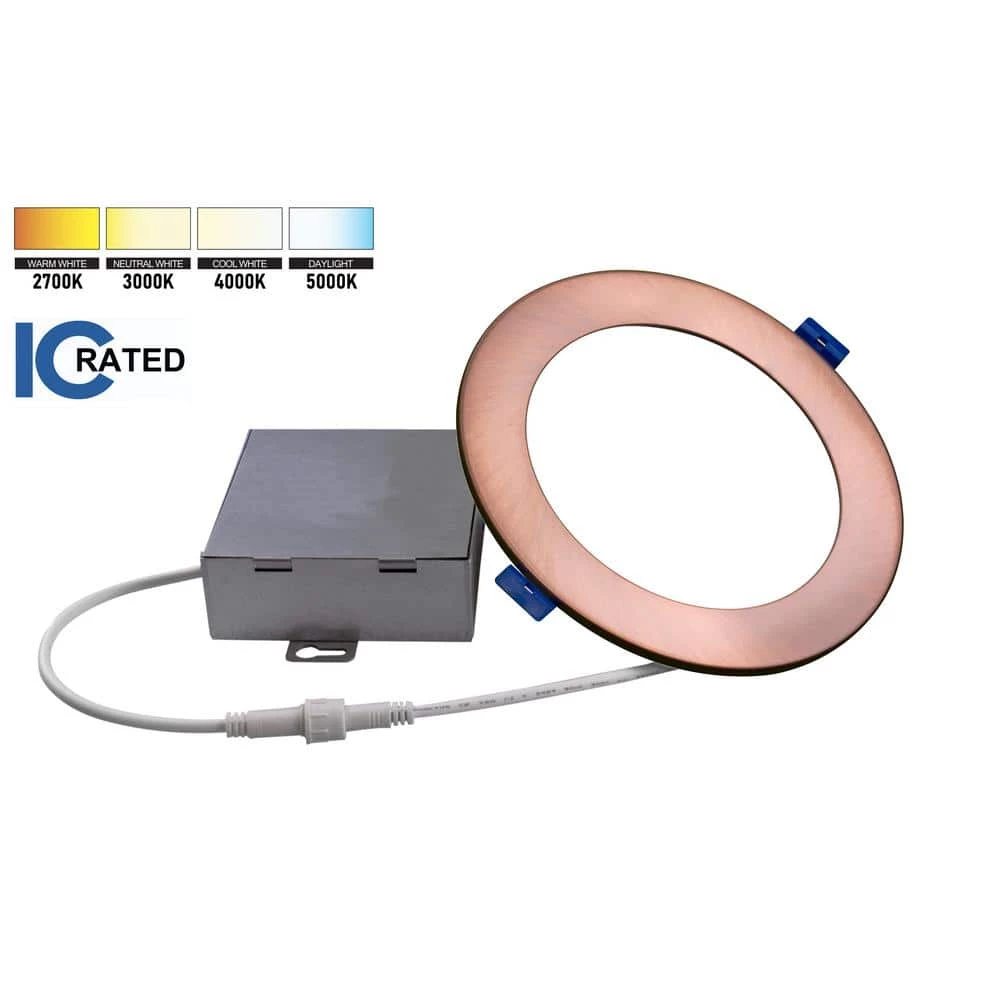 - Includes LED downlight module, off-board driver, and aged copper faceplate