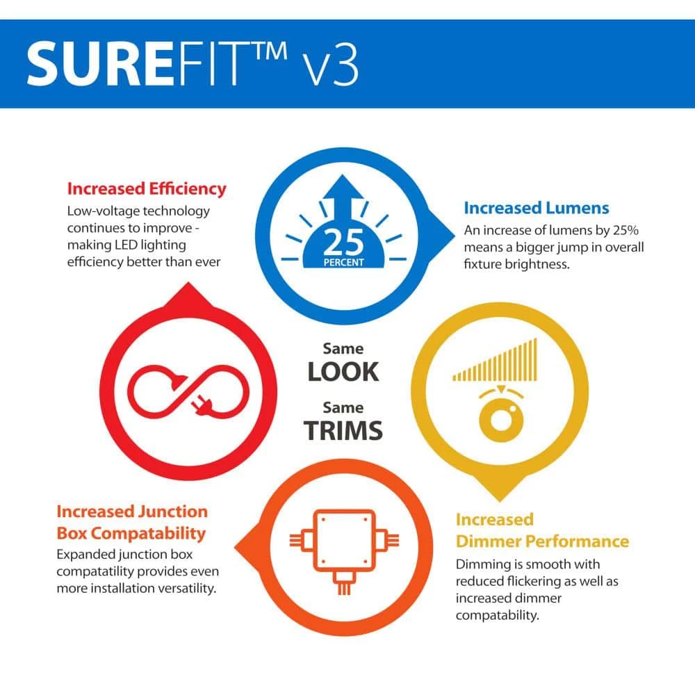 - Includes 1 surefit LED downlight (series 3) and 1 round white trim