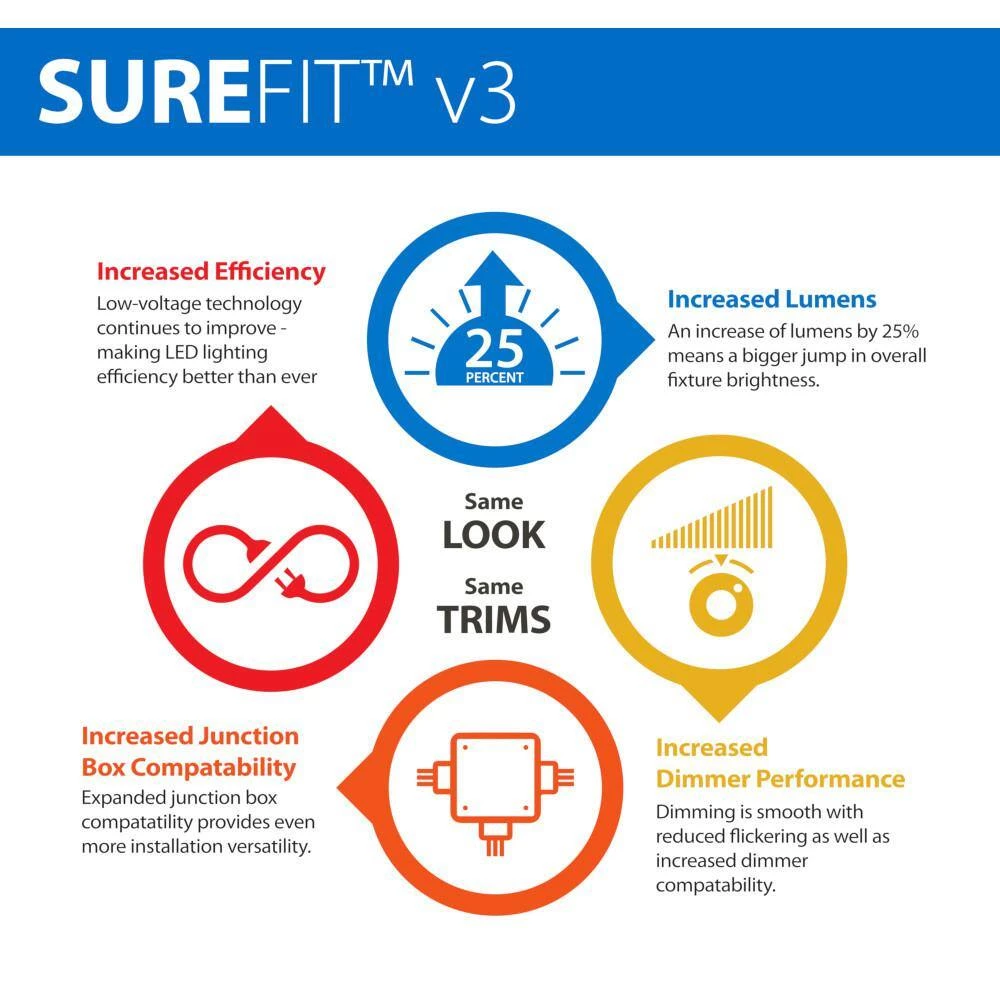 NICOR’s newest generation of the DLF SureFit downlight features an ultra-slim profile with the latest LED technology to improve color rendering, brightness and efficiency. with NICOR’s patented design, easily replace your old flush mount ceiling light without cutting new holes or installing new equipment. Using the included hardware, simply connect the wires to each of the 3 poke-in connectors and mount the fixture directly to any junction box (j-box). The SureFit downlight series is available in multiple color temperatures ranging from warm white to daylight and many trim options to match any decor. SureFit features a tested lifespan of over 54,000-hours backed by NICOR’s 5-Year Limited Warranty. for a truly customized look with a simple retrofit installation, look no further than the DLF SureFit.