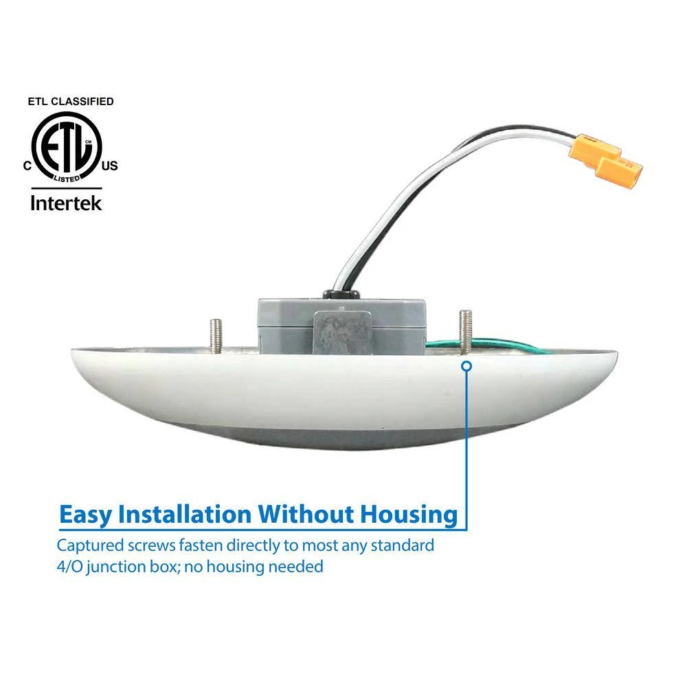 The DLS4 Surface Mount Retrofit Downlight can be installed into a 4 in. housing or a 4/0 Junction Box. Simply remove the twist lock diffuser and set your included captive screws. It’s that quick. The DLS4 downlight can be installed directly into 4 in. recessed housings using the includes friction mounting clips. The DLS4 with Integrated LED Driver is a very flexible lighting solution for both retrofit and new construction applications alike. The high performance DLS4 is available in 2700K, 3000K or 4000K color temperature, and features the latest technology in LED lighting to deliver the highest quality of light to produce 94 CRI and an R9 rating of 62. The DLS4 is also dimmable to 10%, and Wet Location Rated for use in Showers. Also Energy Star Rated, Title 24 Compliant, and features a 5 Year Warranty.