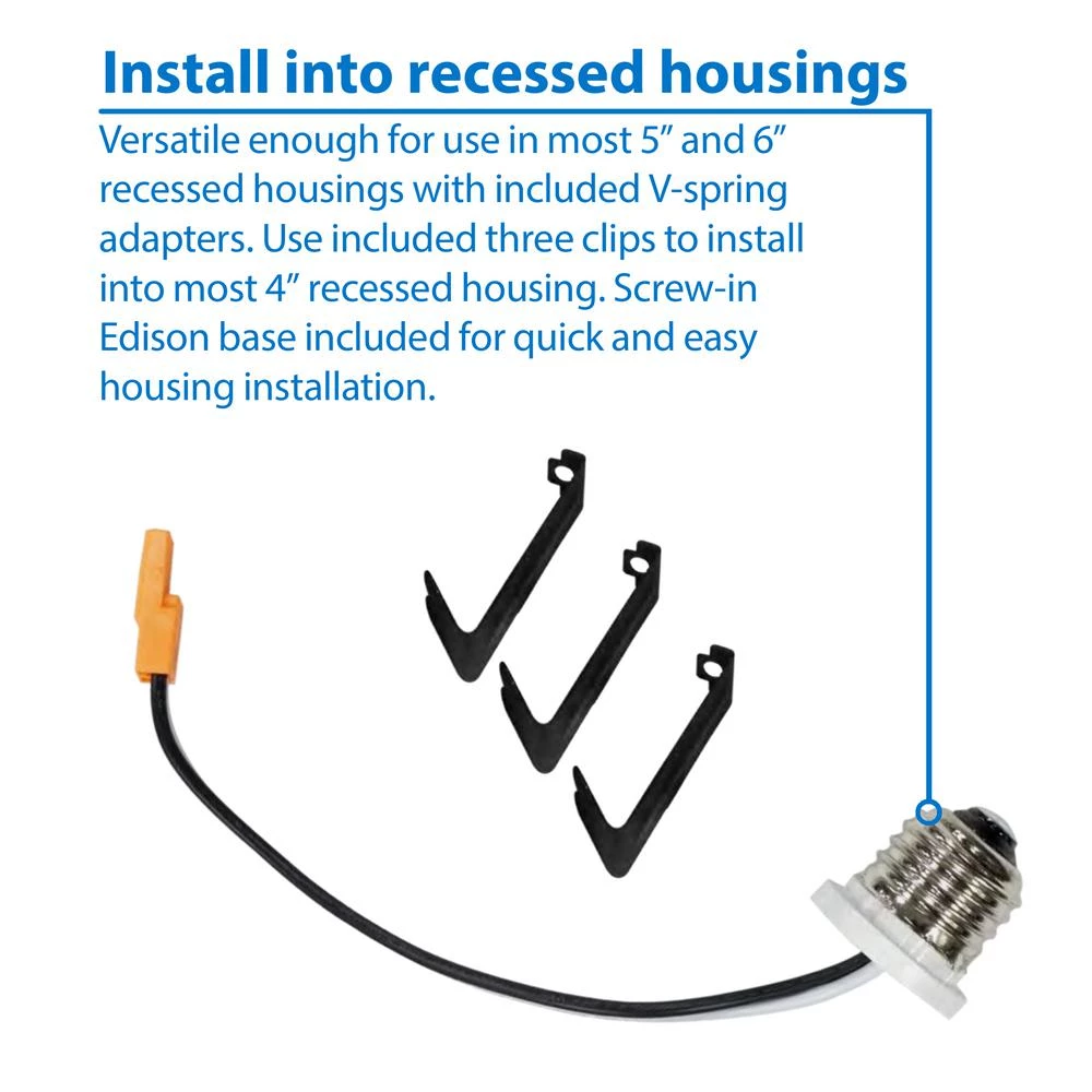 - Connects to power with the included Edison Socket adapter or IDEAL Connector