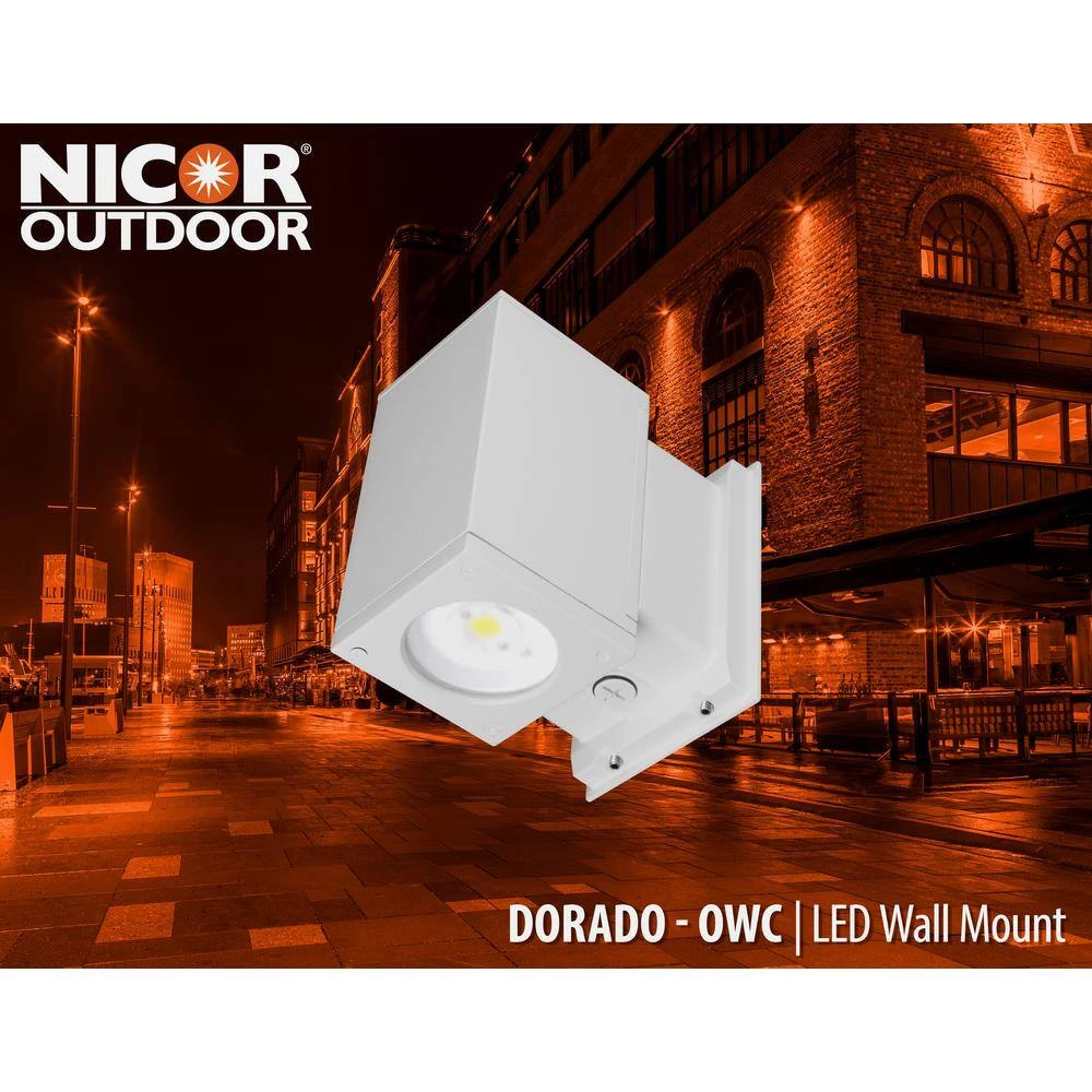 The Dorado Square LED Outdo or Wall Mount Cylinder Light features a contemporary design that’s sure to compliment any architectural structure. It’s constructed with die-cast aluminum and finished with a fine-textured, UV-stabilized powder-coat finish. The unique prismatic lens produces over 2,000 Lumens of bright light, ideal for any outdo or area. The Dorado is ideal for porches, walls, columns, walkways and general outdo or lighting as needed. The universal junction box mounting plate is detachable to make installation as easy as possible. This high-performance light can be used with both 120-Volt or 277-Volt applications. Available in White or Bronze in 3000K, 4000K or 5000K col or temperatures. Protected by NICOR’s 5-year limited warranty.