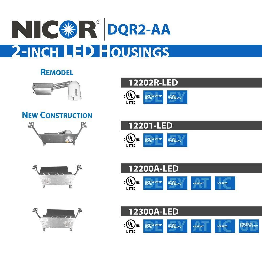 - For IC-rated, airtight new construction application, use housing model 12200A-LED