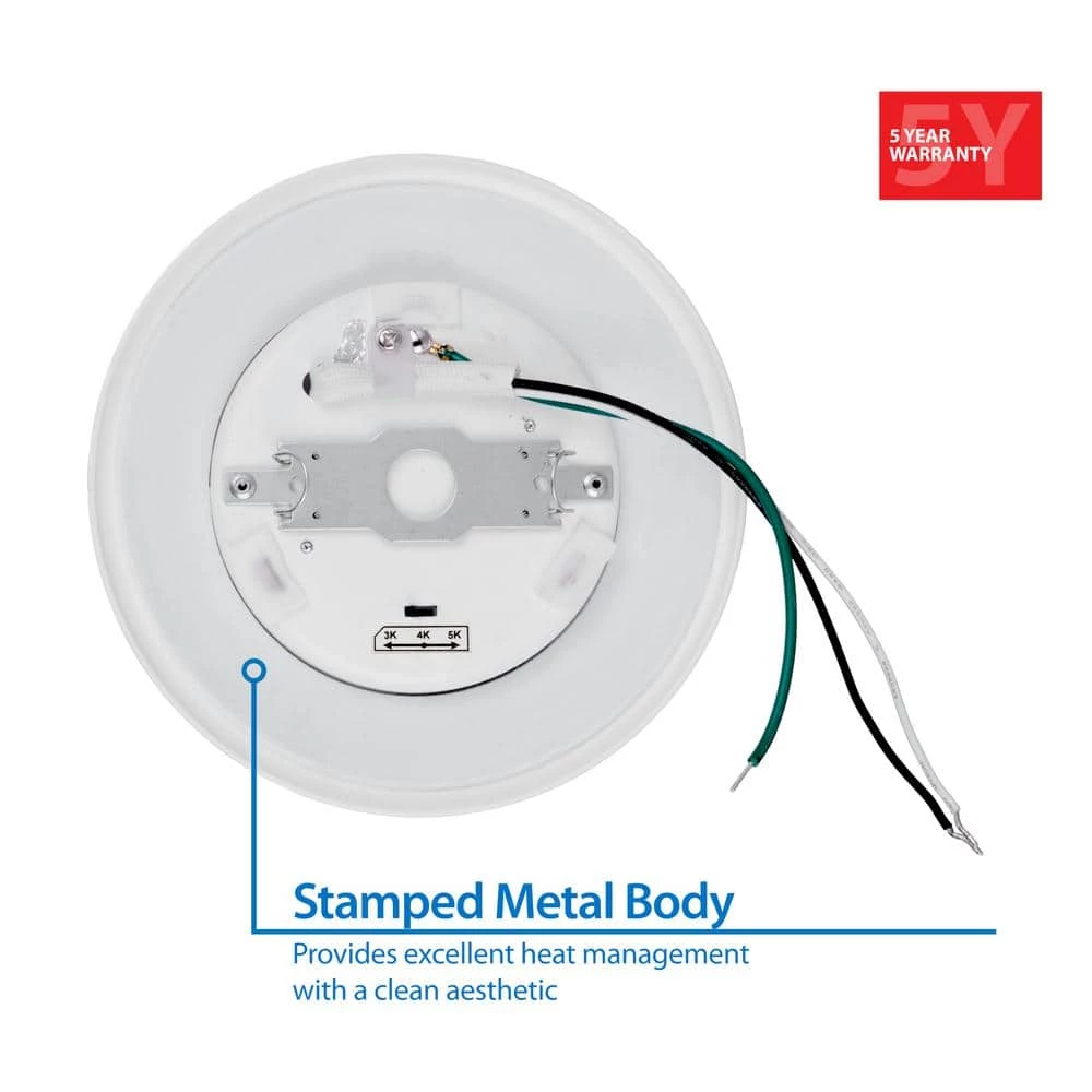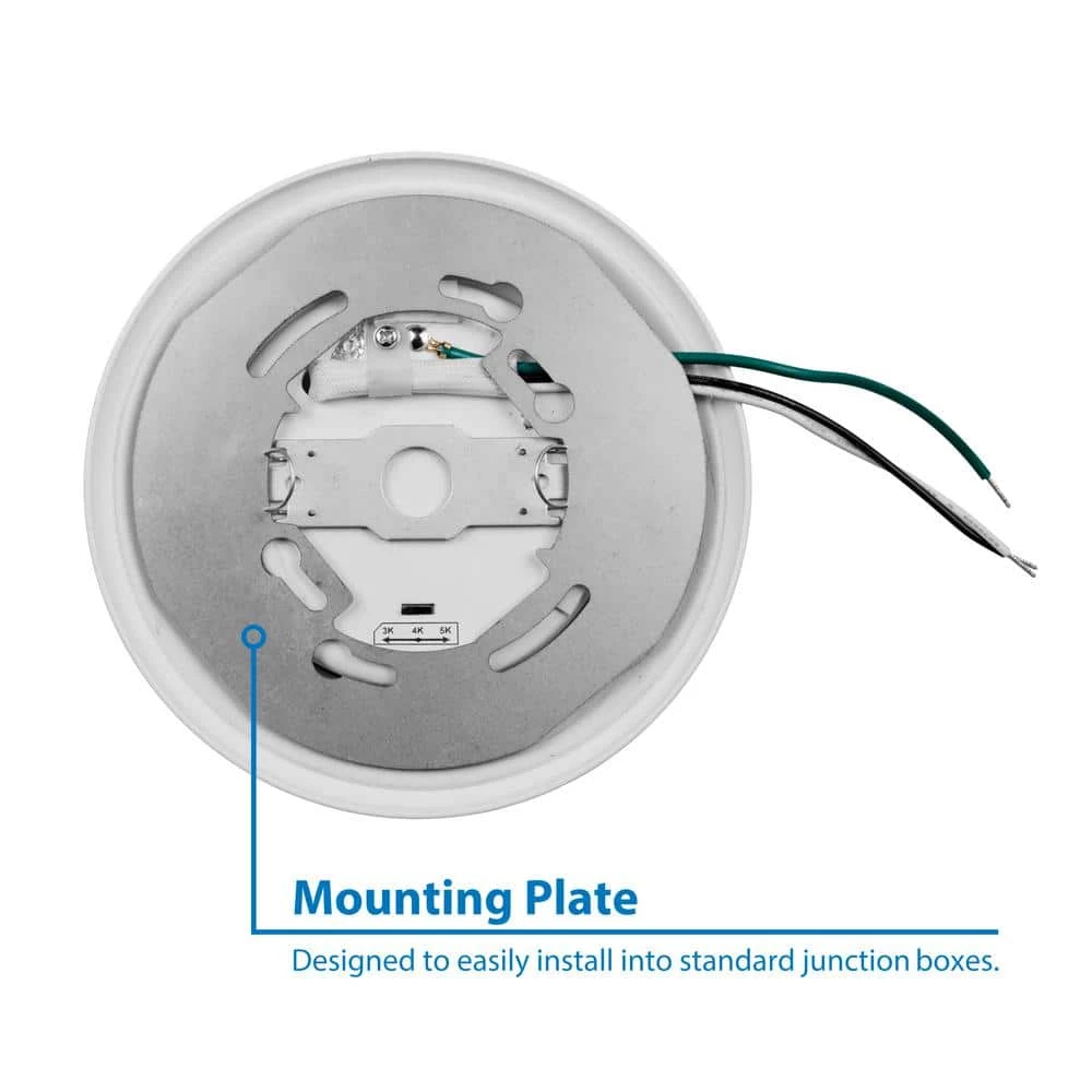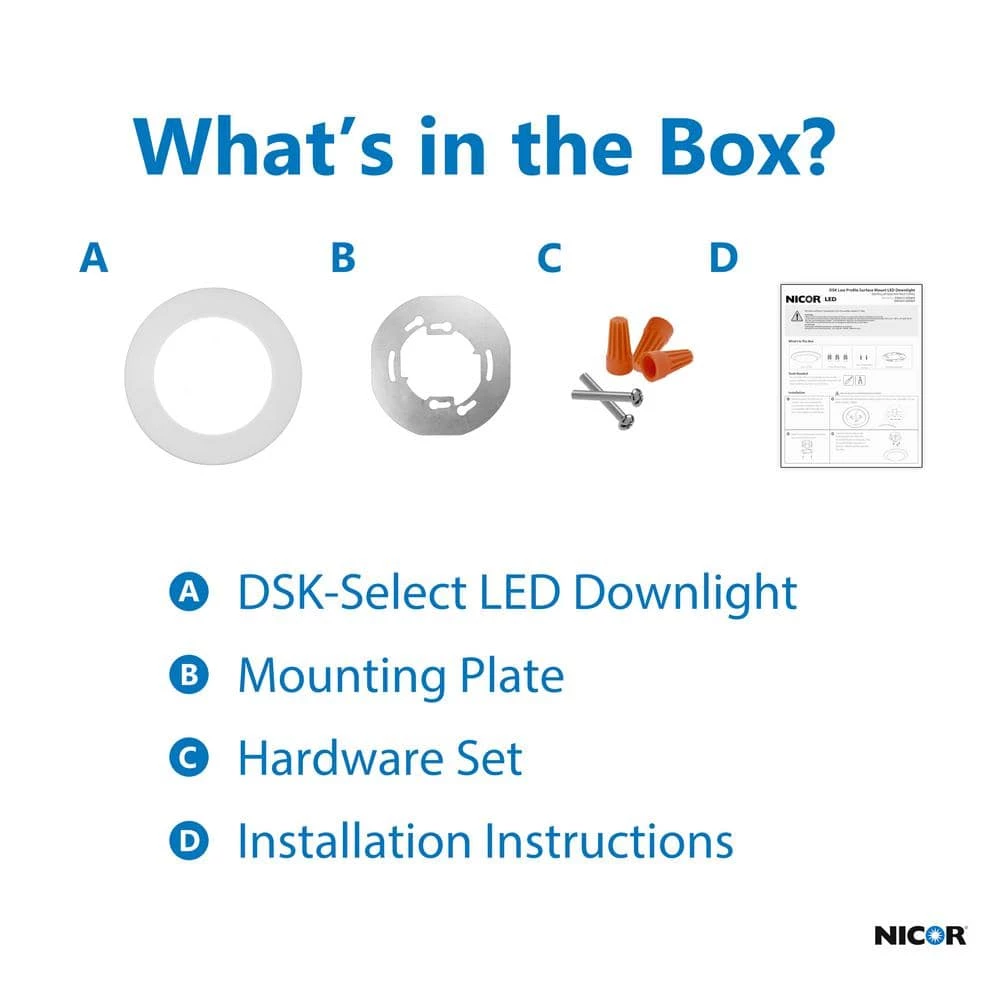 The DSK4 Select 4 in. LED Surface Mount Disk Light is an affordable light fixture that’s easy to install. The driverless technology allows the DSK4 Select to fit most 4 pancake, 4 in. non-metallic, or 4/O junction box, eliminating the need for a recessed housing. Simply screw the mounting plate (included) onto the junction box and the DSK4 Select snaps right in to place. Installation could not be easier. The DSK4 Select is also equipped with NICOR’s new Select technology, which allows you to choose between 3000K, 4000K, and 5000K color temperatures using a micro-switch located on the back of the fixture. The matte white, powder-coated steel body with UV stabilized polymer diffuser lens is built to outlast the competition. The DSK4 Select is ENERGY STAR rated, Wet-Location rated, and dimmable to 5% using standard TRIAC or ELV dimmers. Protected by NICOR’s 5 Year Limited Warranty. The DSK4 Select comes ready to install and use right out of the box, no other parts or components required.