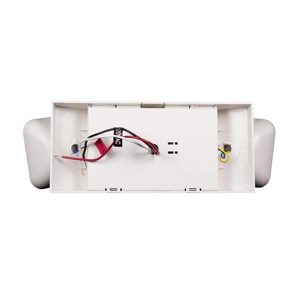 The NICOR EML3 Emergency LED Light features a low-profile design with two independent adjustable LED Heads. Each head can rotate 330ยฐ and tilt to 90ยฐ making it easy to direct light to where it needs to be. The injection-molded thermoplastic is UL-94v-0 flame retardant and damp-location rated. The EML3 features 90 minute emergency backup lighting that kicks on if the power is cut. The EML3 uses only 2.1-Watt of energy to produce 203 Lumens of light. It can be installed in both residential (120-Volt) and commercial (277-Volt) settings. It’s designed to install easily into any junction box using a universal mounting plate with EZ quick connects for wiring. The EML3 is also available in a remote capable option (see EML310UNVWHR). Includes a 2-Year Limited Warranty.