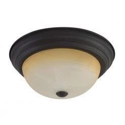 Discount 🔔 Belen 2-Light Venetian Bronze Flush Mount with Amber Glass Shade by Yosemite Home Decor 🔔