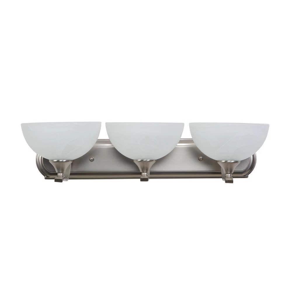 The Glacier Point vanity collection, by Yosemite Home Decor, is a more modern fixture. Its bowl-shaped glass covers surround the incandescent bulbs for a very clean and contemporary look. The Satin Nickel frame glistens in the light, really making this piece stand out. To accommodate various needs the Glacier Point fixture is also available with one (1391SN), two (1392SN) and four (1394SN) lights. This fixture requires three medium-based, 100-Watt incandescent bulbs (not included).