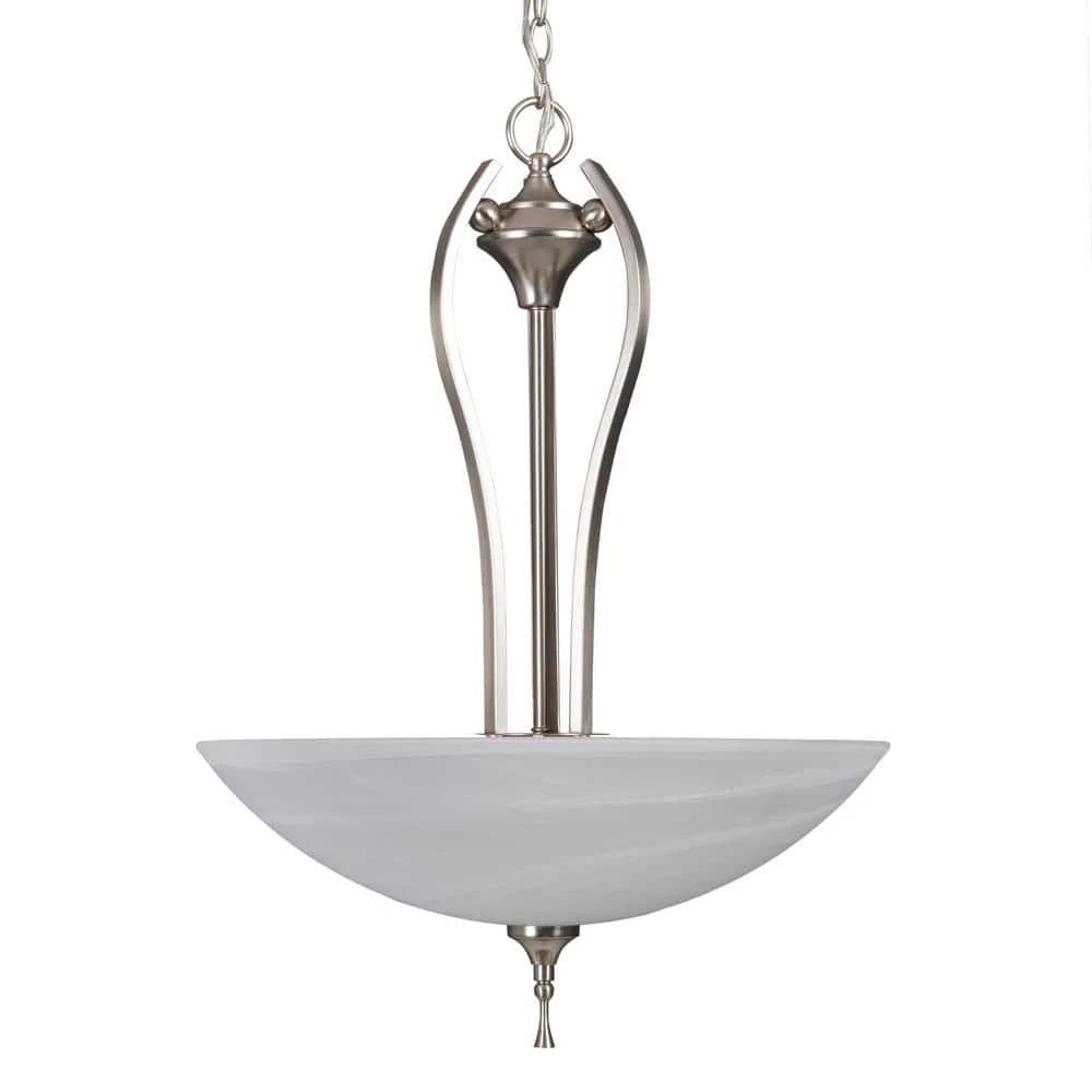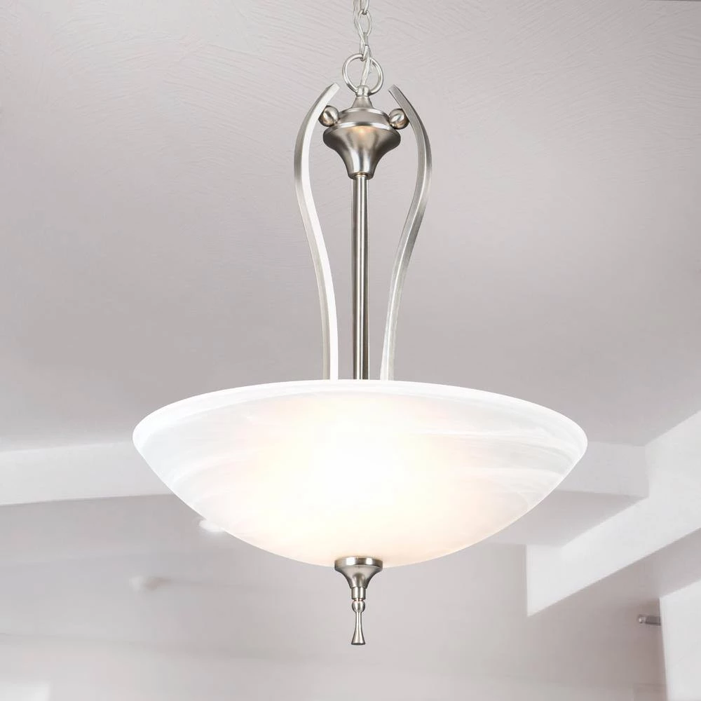 This model from the Glacier Point collection by Yosemite Home Decor is a nice-looking piece–its frame design, Satin Nickel finish and Ivory Cloud glass give it a cosmopolitan feel. Its three medium-based, 100-Watt, incandescent bulbs (not included) provide excellent ambient lighting in your foyer area. Located in Fresno, California, Yosemite Home Decor is a premier leader in Lighting and other unique home products.