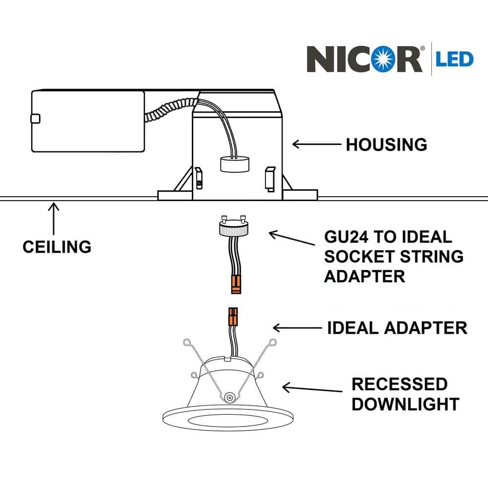 The GU24 to IDEAL Socket String Adapters allows LED Downlights and other fixtures equipped with IDEAL connections to be used with GU24 housings and socket bases. The IDEAL connecter is an orange connection that is becoming more commonly used in the LED industry as an alternative to Edison and Medium light bulb bases. The IDEAL connection provides a secure connection that allows high quality LED’s to perform without losing light quality through outdated connections such as the screw-in Edison base, which was never designed to accomodate the performance and quality that so many LED fixtures are equipped with today.
