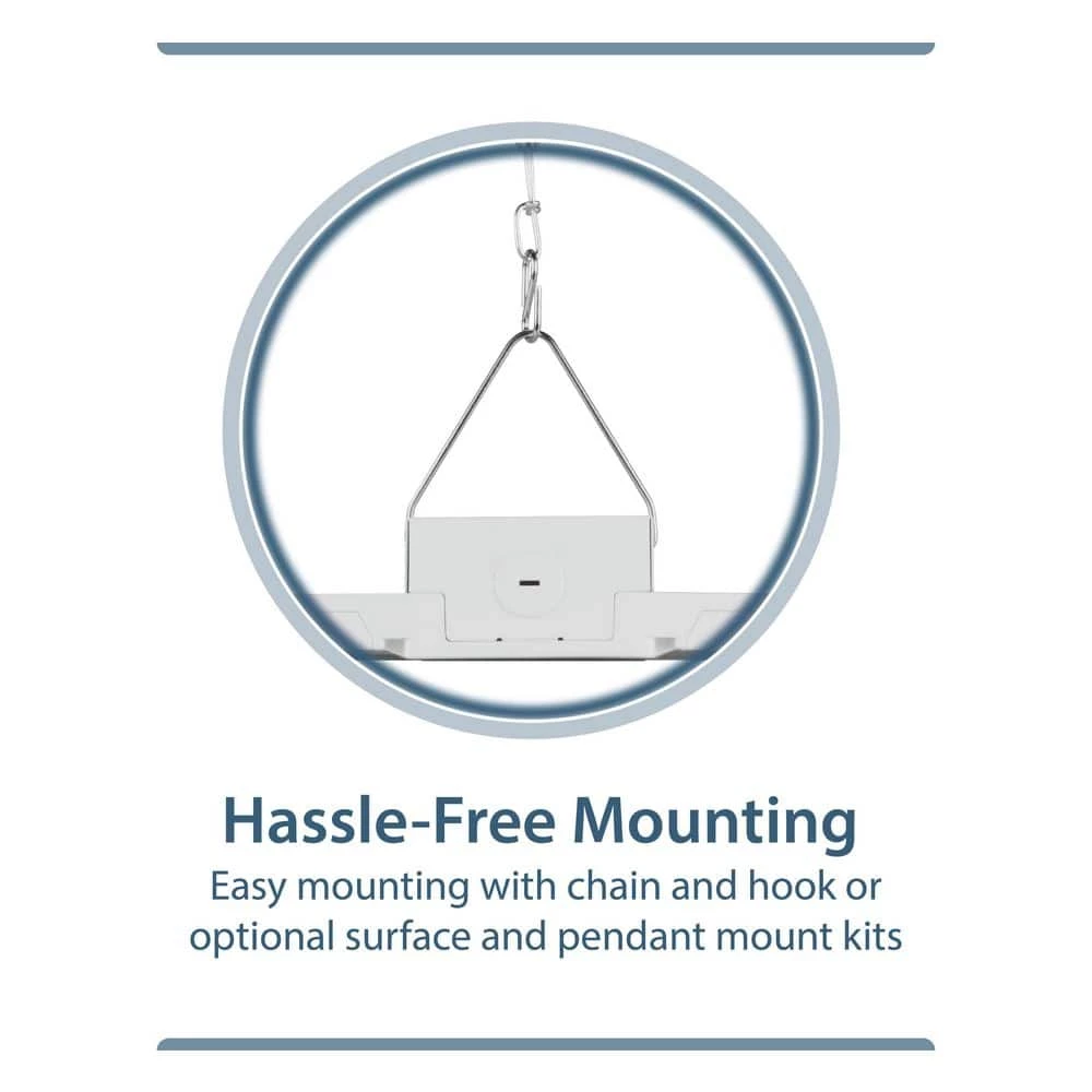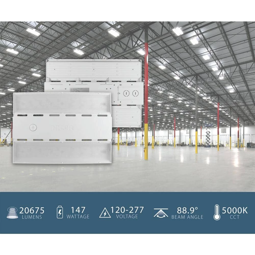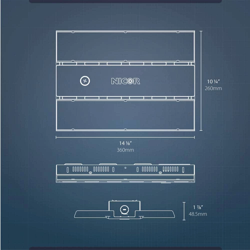 The HML1 is the newest addition to NICOR’s high bay product family. With it’s slim 10 in. x 14 in. footprint (on smaller wattages), the HML1 offers the high performance of a full-size fixture in a compact package. Available in 4000K and 5000K color temperatures with a variety of wattage and aisle distribution options, making it the ideal solution to replace traditional fluorescent fixtures. The HML1 also features a sensor socket option, allowing for field installation of motion sensor accessories adding to its versatility. The DLC 5.1 Premium fixture is equipped with built-in 0-Volt to 10-Volt Dimming (full-range) and is Damp-Location Rated. Included is a V-Hook and Chain mounting system for easy installation. With its durable single-piece cast aluminum design, the HML1 is perfect for rugged applications like warehouses, gymnasiums and other industrial or commercial spaces.