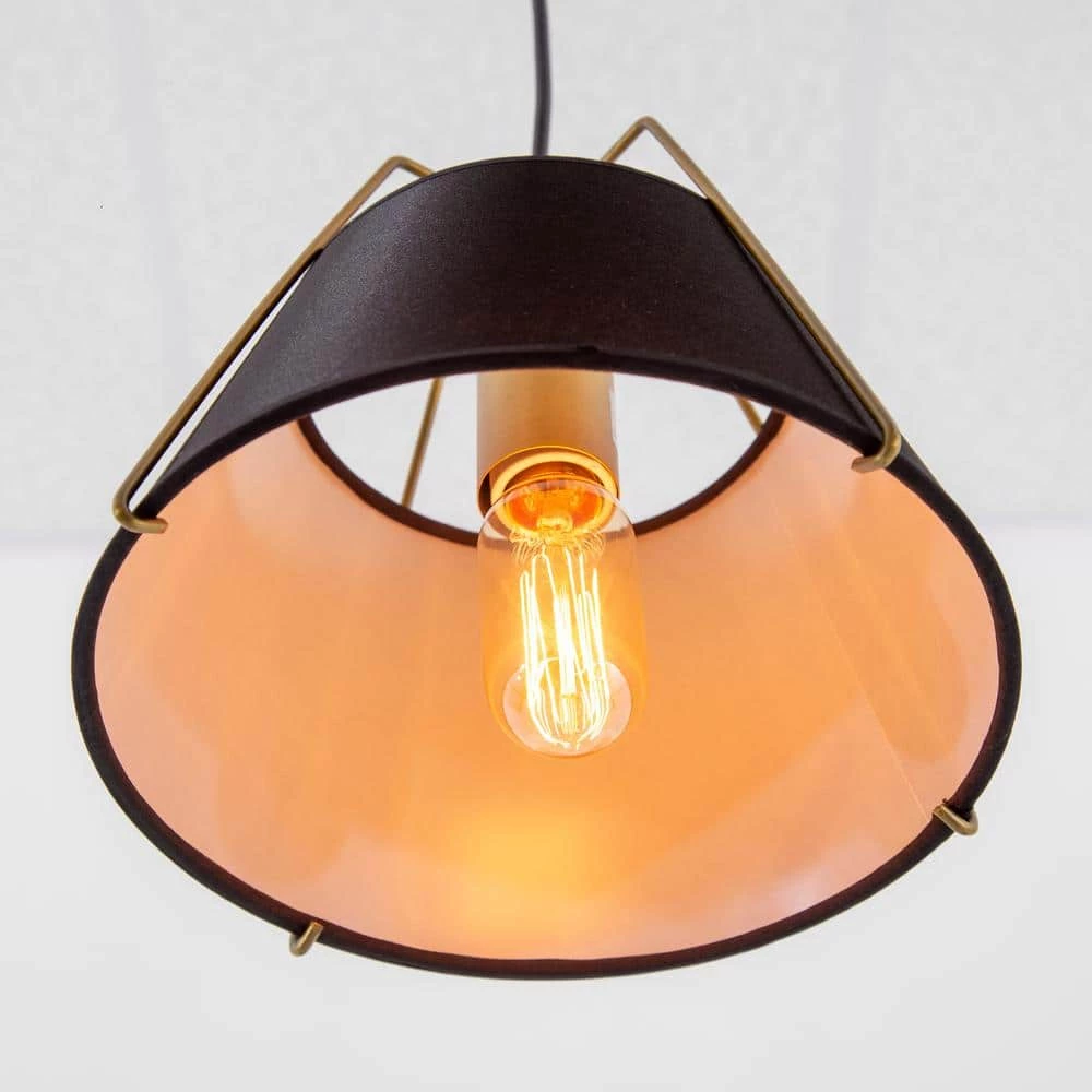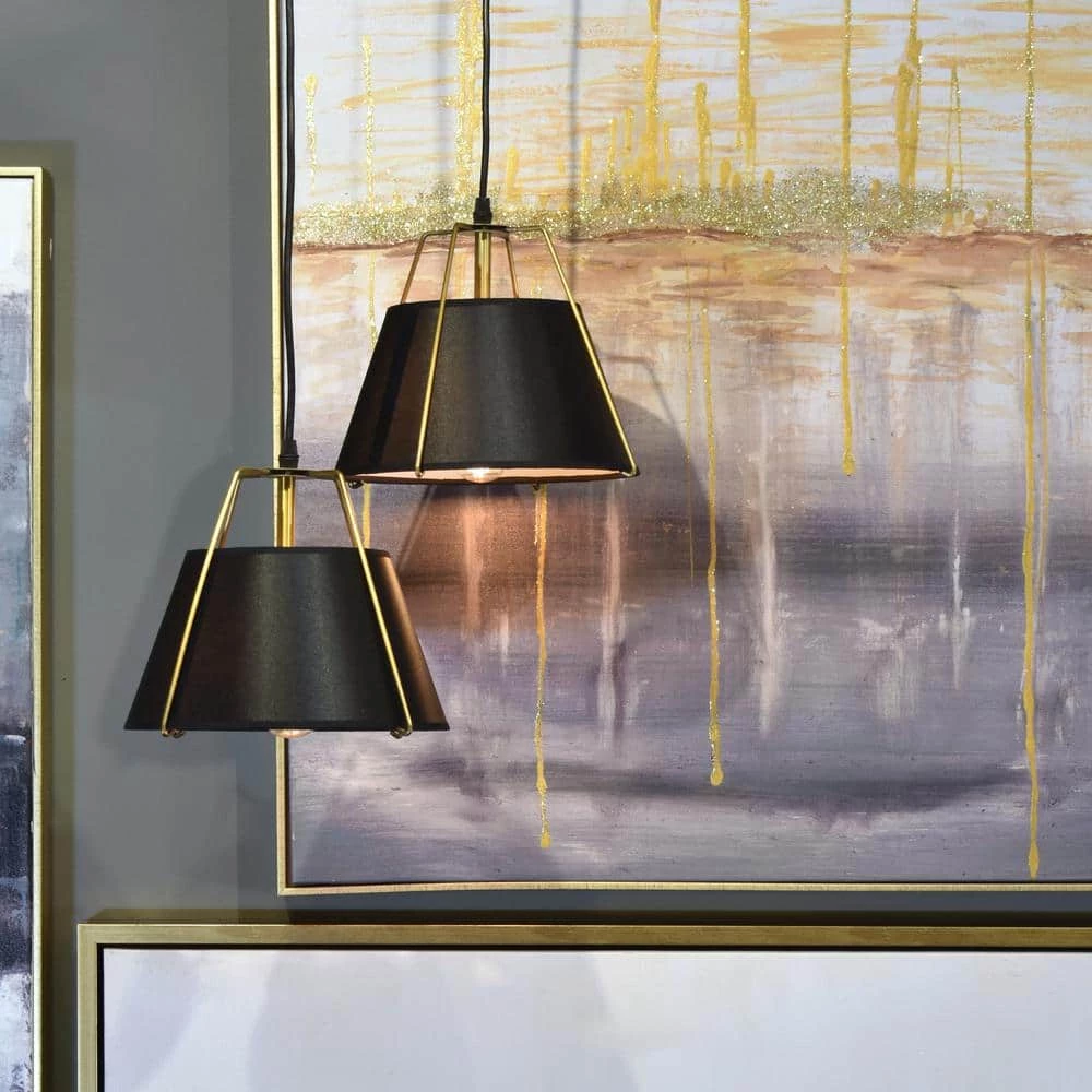 This single light Modern pendant provides a minimalistic yet sophisticated and airy design. The 9 in. tall black shade perfectly compliments the soft gold frame. Hung with a cord of 120 in. The height can be adjusted to needed height. Canopy in matte gold finishes the look. Get creative with your design. Use this modern pendant with black shade in the kitchen, over the bedstand or anywhere where stylish contrasting accent is needed.