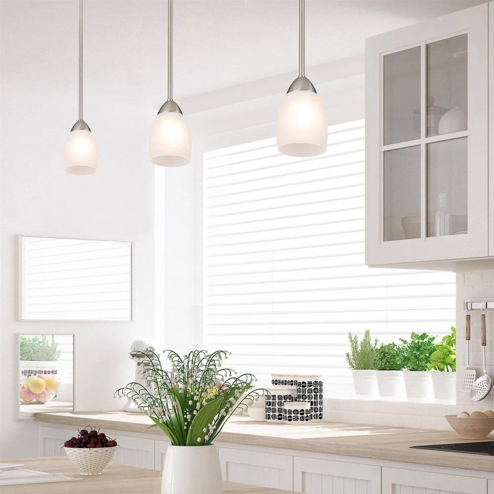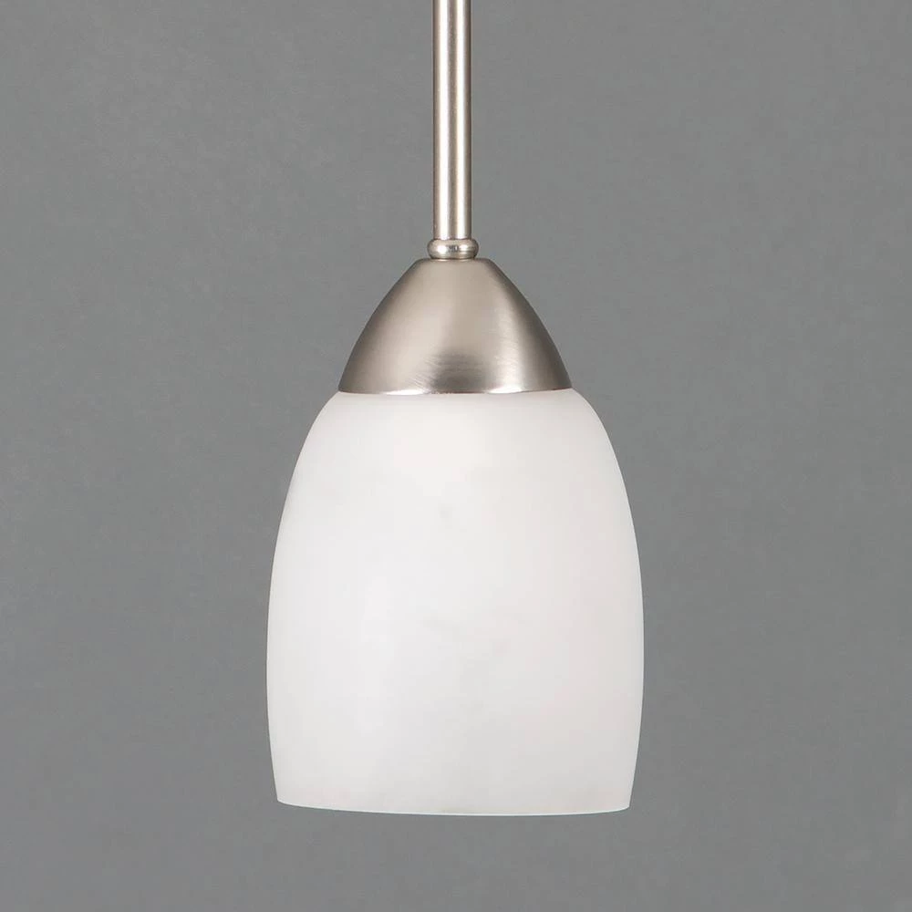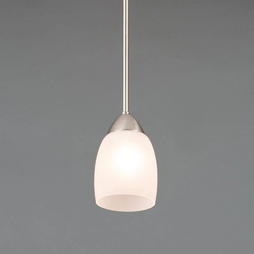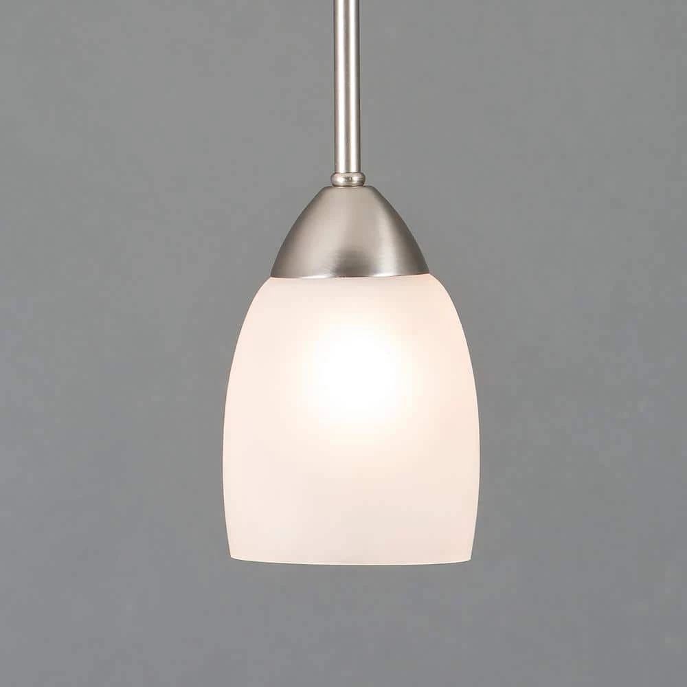Yosemite Home Decor presents the Mirror Lake Collection. This 1-light mini pendant in Brush Nickel with an etched White handle less cup glass shade is simply chic. Constructed of steel this mini pendant is durable, sustainable and easy to care for. A limited 1-year warranty is included on all parts. It requires (1) incandescent medium (E26) base bulbs at a recommended maximum of 100-Watt. Its dimensions are 24.5 in. H x 4.5 in. W x 4.5 in. D and weighs 2.28 lbs. Item Code #1261-1P-BN.