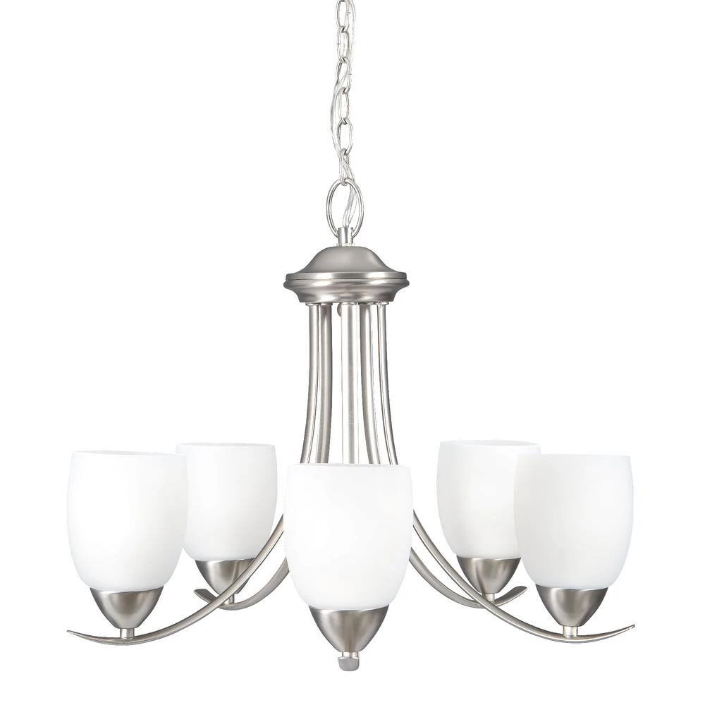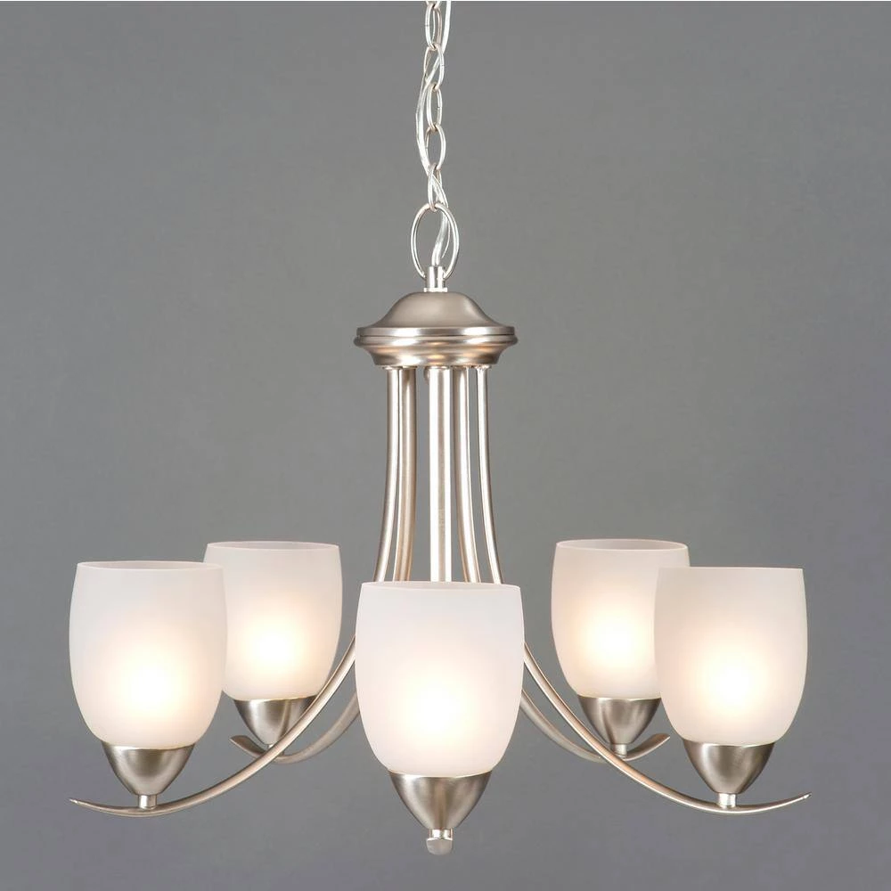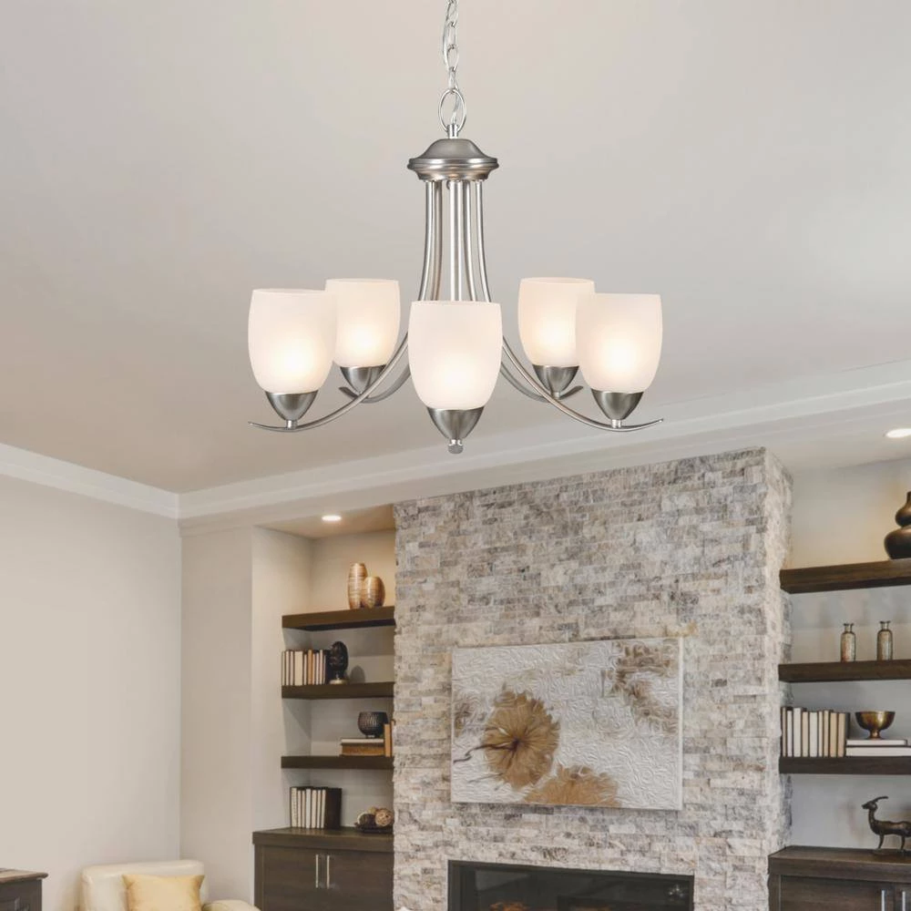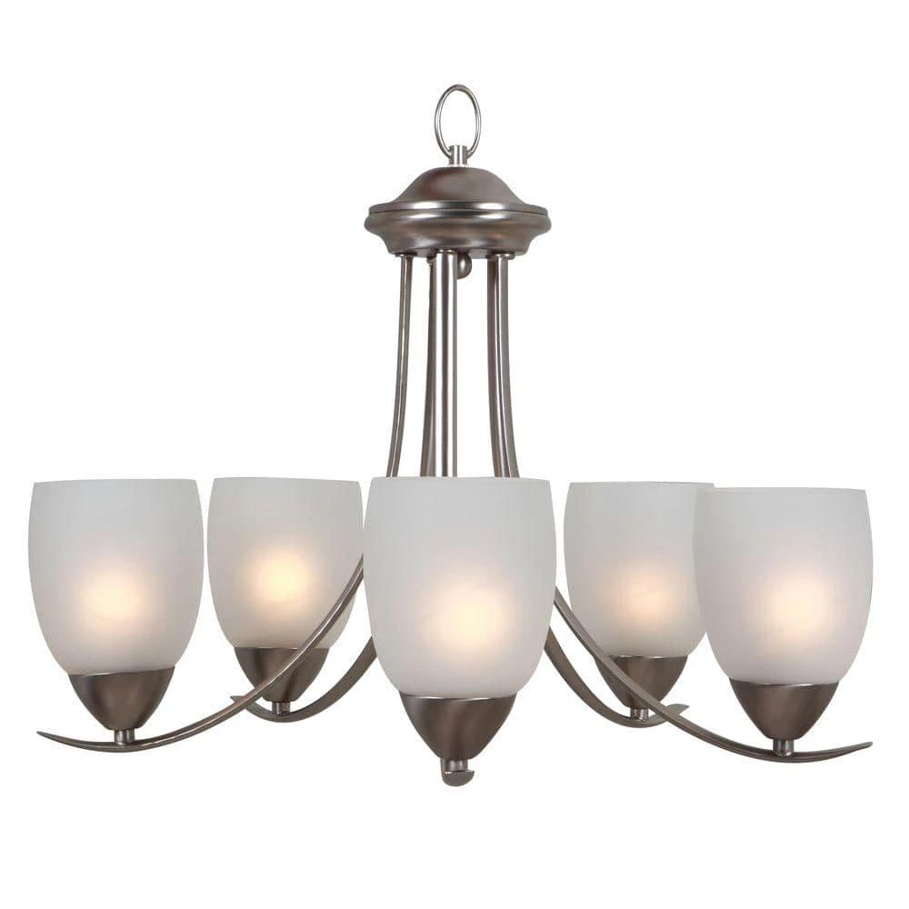 Update your home with the Mirror Lake Collection by Yosemite Home Decor. This stunning Brush Nickel up light chandelier is simple and chic, a perfect addition for your dining or living room. Constructed of steel this vanity light is durable and easy to care for. A limited 1-year warranty is included on all parts. It requires (5) incandescent medium (E26) base bulbs at a recommended maximum of 60-Watt. Its dimensions are 18 in. H x 22.25 in. W x 22.25 in. D and weighs 9.2 lbs. invite sophistication into your home with Yosemite Home Decor. Item Code #1261-5U-BN.