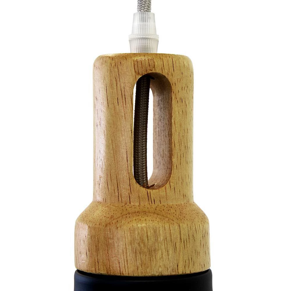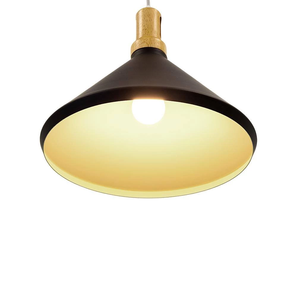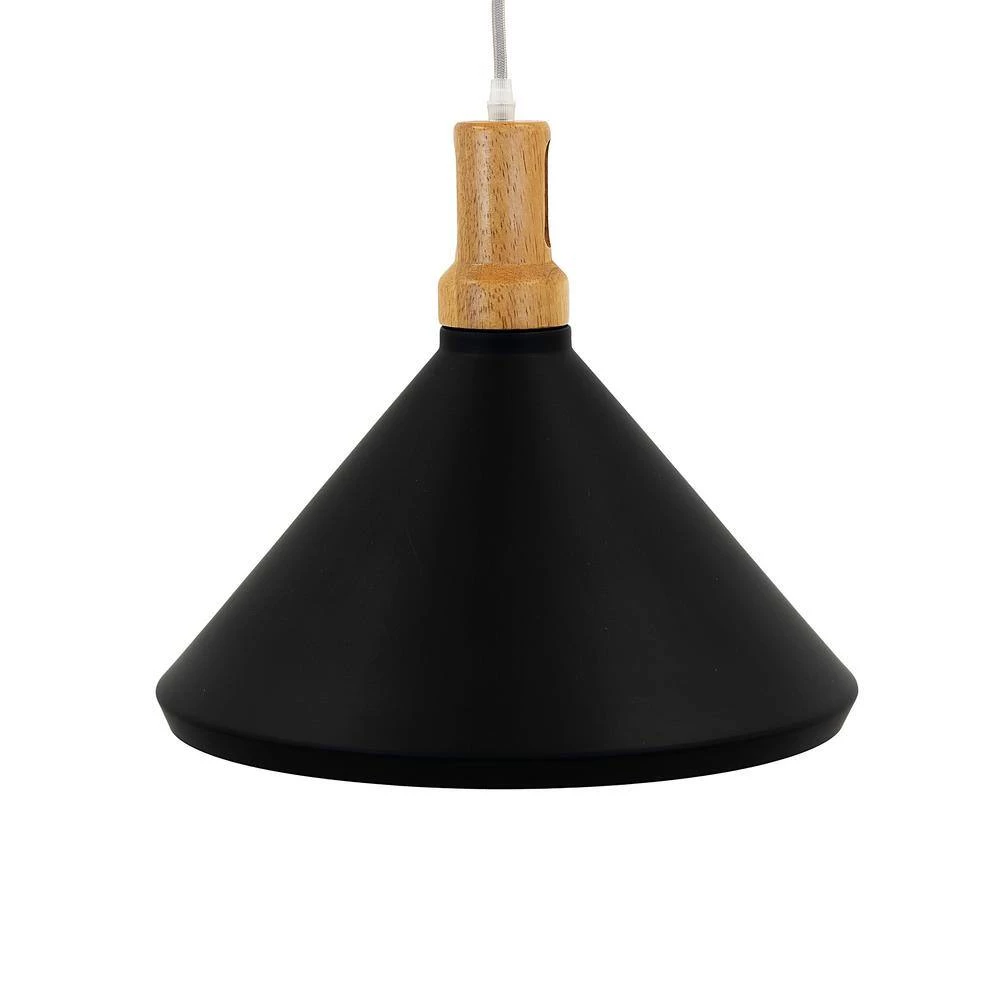 Set the right mood in your home with the Noire pendants. Sleek and refined in a variety of shapes. These aluminum shades come in a smooth black finish; each features a wooden detail at the top. Contrasting vintage finish on the inside of the shades gives these pendants lamps just the right finish.