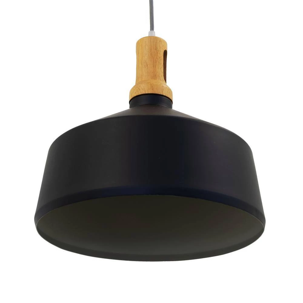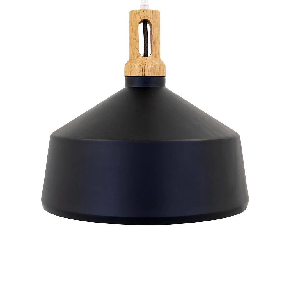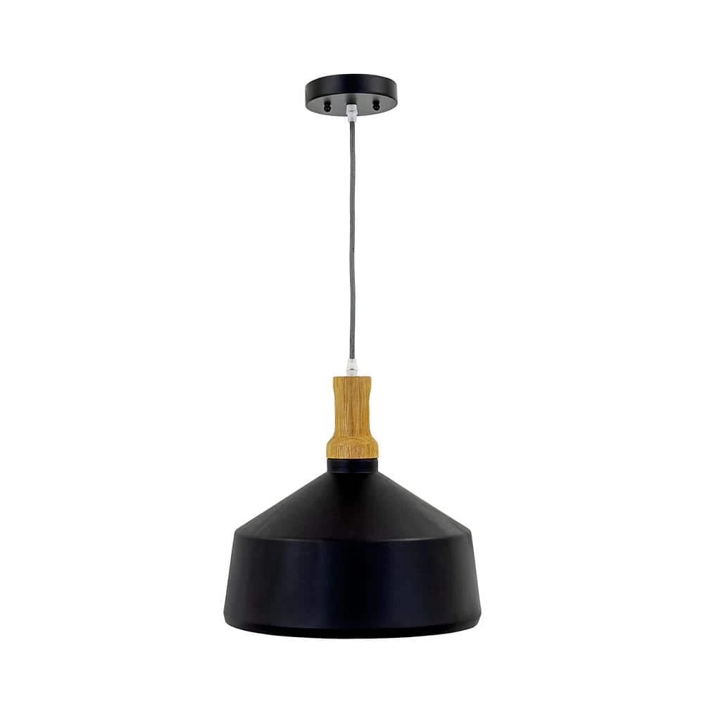 Set the right mood in your home with the Noire pendants. Sleek and refined in a variety of shapes. These aluminum shades come in a smooth black finish; each features a wooden detail at the top. Contrasting vintage finish on the inside of the shades gives these pendants lamps just the right finish.
