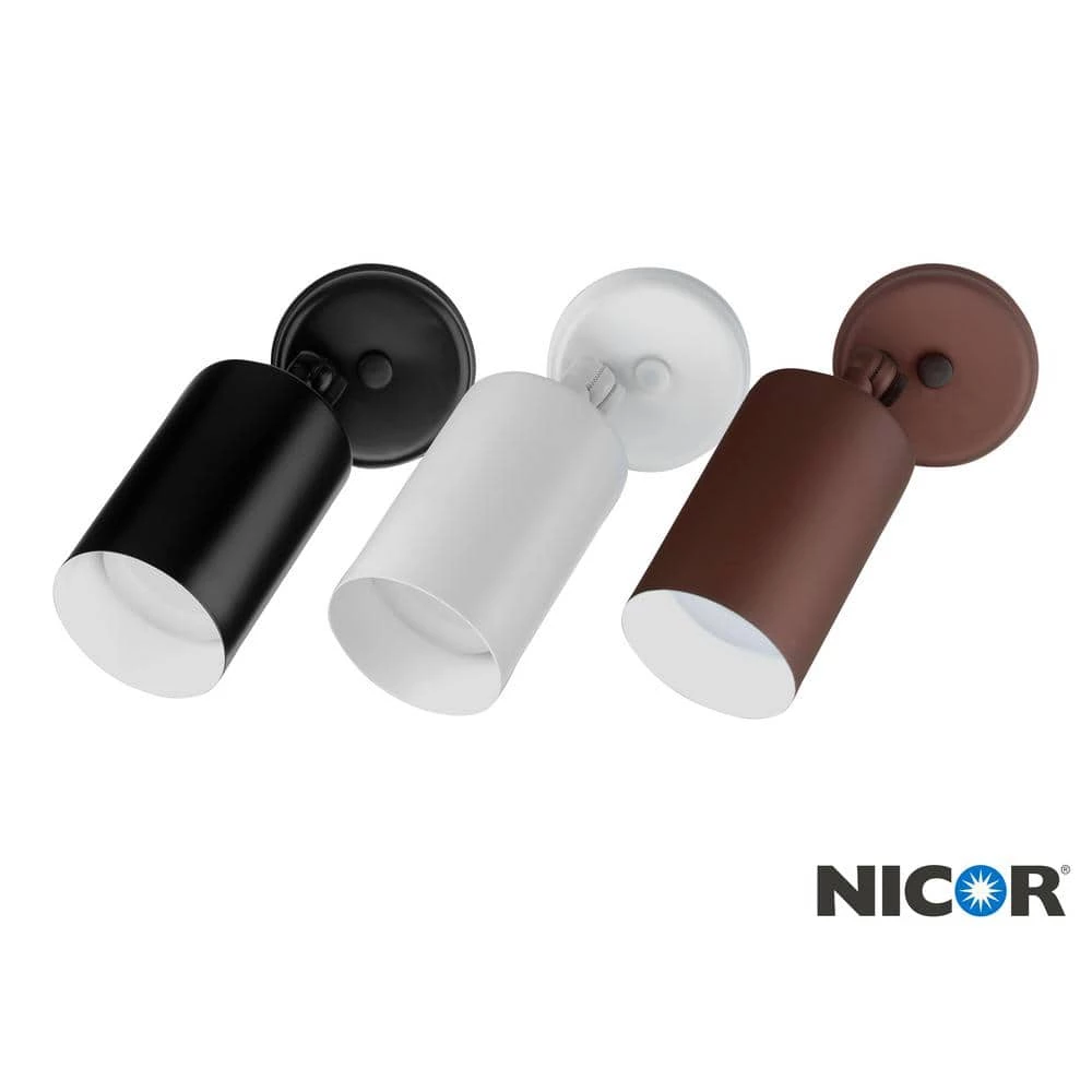 The NICOR 75-Watt outdoor Single-Cylinder Flood Light features a fully adjustable head, directing light where it’s needed. The surface mount security light is the perfect solution for lighting those dark, hard to see areas. The 75-Watt flood light is bright enough to light large areas to provide safety, security, and general area lighting at night in both residential and commercial settings. The weather resistant powder coated aluminum ensures a dependable, long lasting life span. This 75-Watt Single Cylinder Flood Light is available in Black, Bronze, and White. It’s Wet-Location rated for outdoor use and does not require tools for changing the bulbs. Protected by NICOR’s 1 Year Limited Warranty. Requires one 75-Watt Bulb, not included.