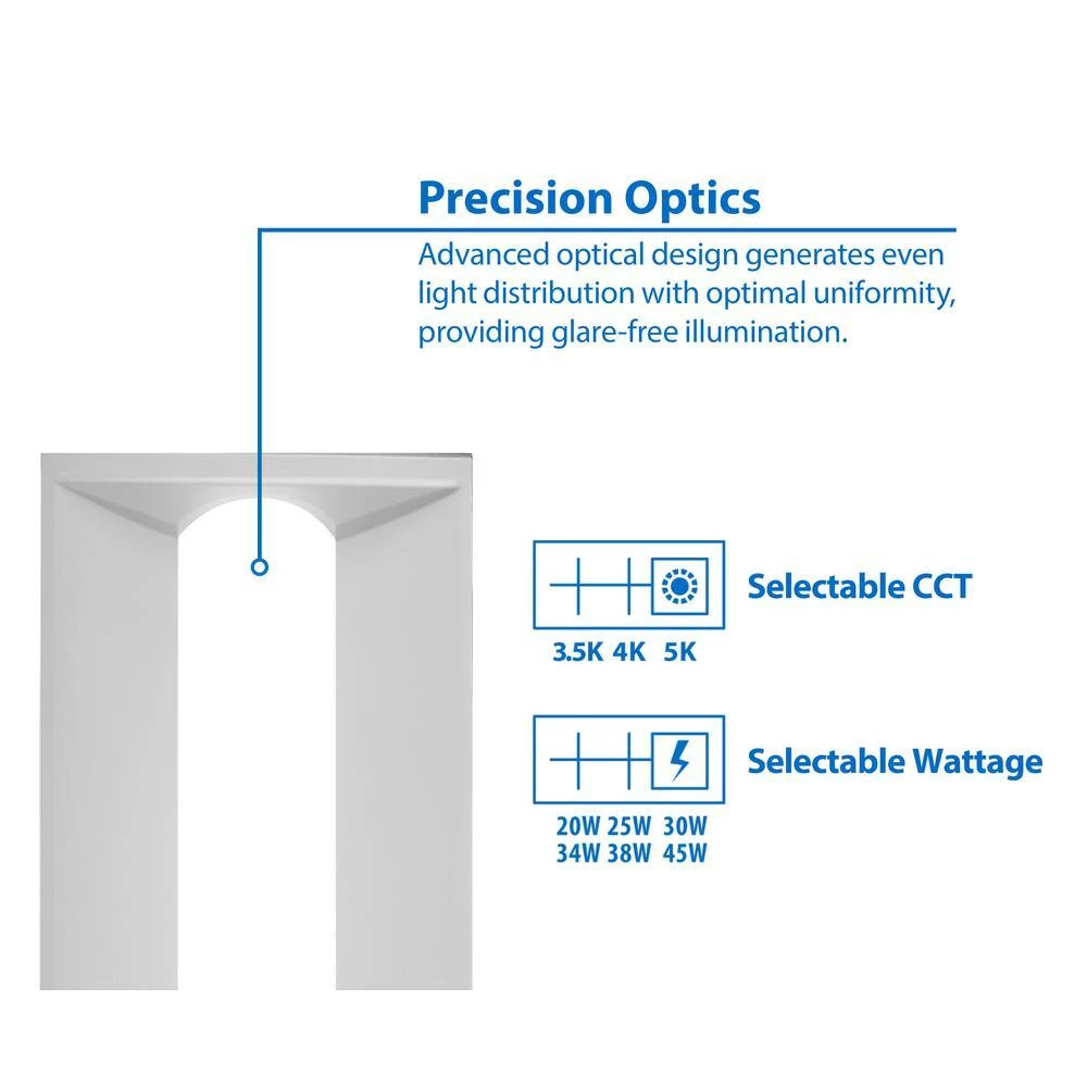 The TAR SELECT Series is an all new LED Troffer Retrofit Kit with multiple color temperature options at 3500K, 4000K and 5000K. Upgrade your existing linear fluorescent lighting with the latest energy-efficient LED solution. This all-in-1 retrofit kit installs easily into existing fluorescent fixture frames from below the ceiling, saving time and money on installation. The TAR SELECT features 2 selectable switches to control color temperature (3500K, 4000K, 5000K) and wattage (20-Watt, 25-Watt, 30-Watt) in addition to 0-Volt to 10-Volt full-range dimming. The contemporary parabolic design delivers a brilliant glow with low glare and a designer look that’s sure to impress. The TAR SELECT includes a pre-installed dual-voltage driver (120-Volt to 277-Volt) and a sealed polycarbonate lens to keep out dust and debris often seem in older fixtures. With a lifespan of over 50,000-hours, you won’t have to break out the ladder to change light bulbs. The TAR SELECT is damp-location rated and protected by NICOR’s 5-year limited warranty.