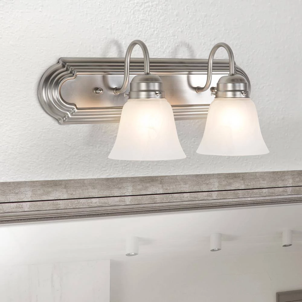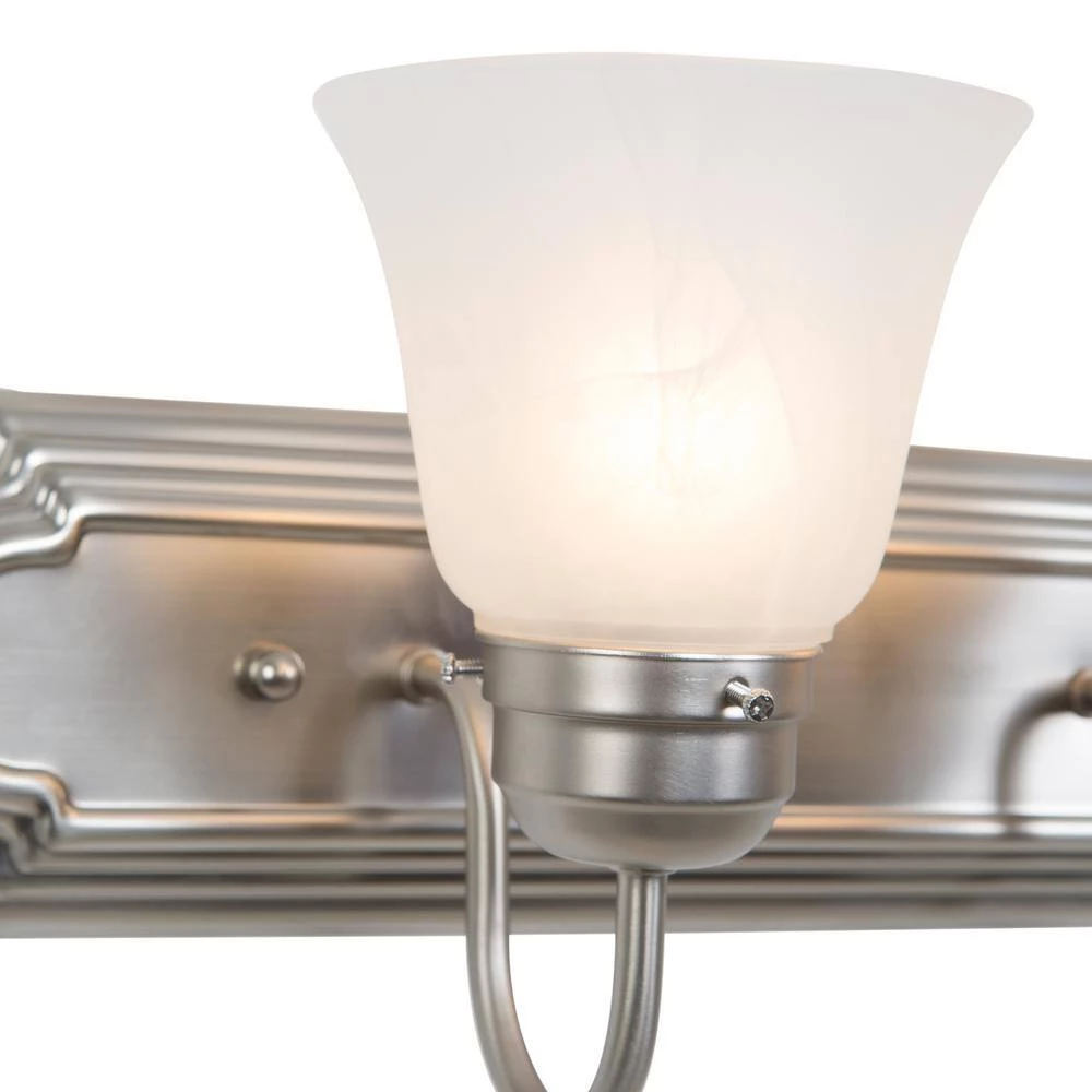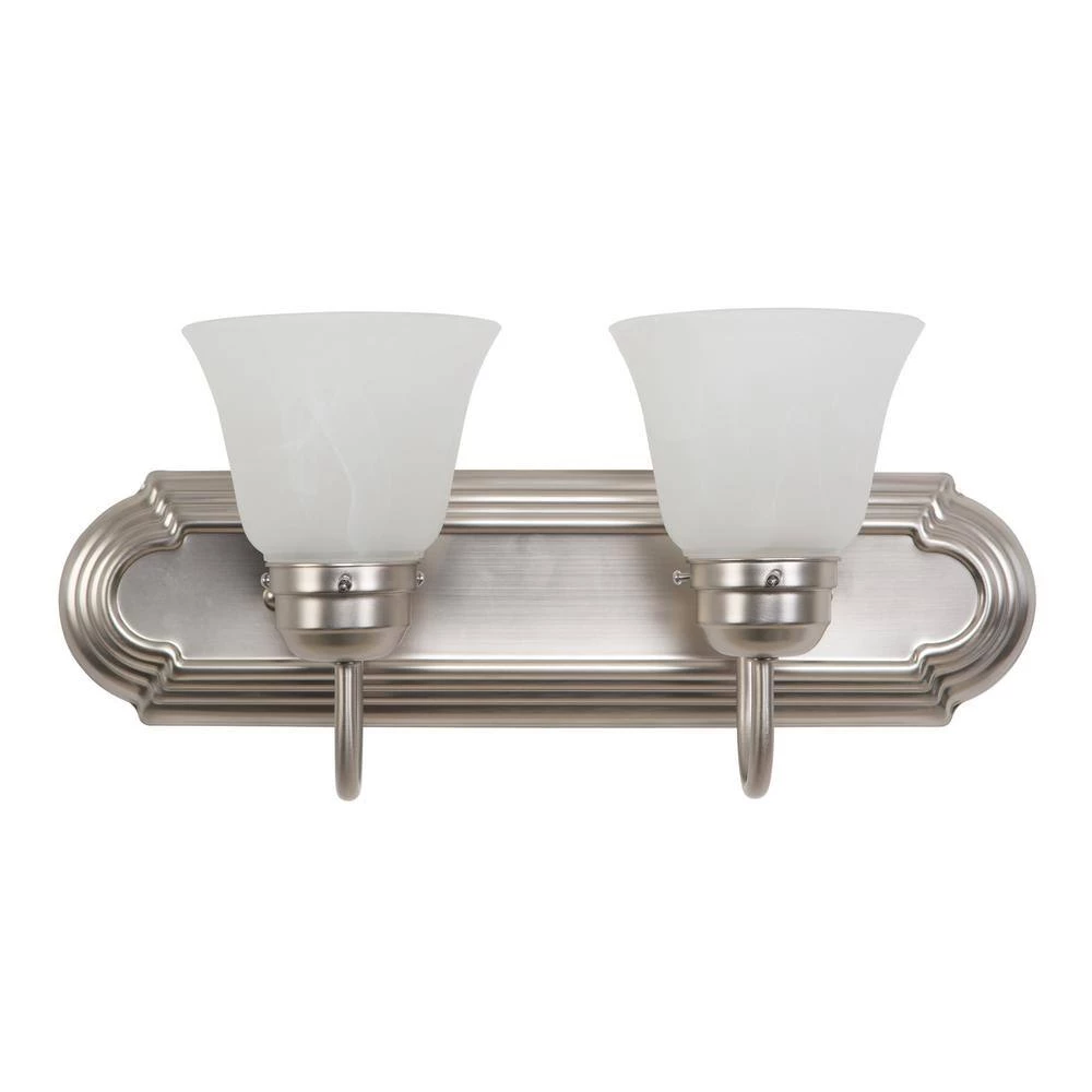 The 4992-2SN by Yosemite Home Decor is a beautiful fixture. Its Satin Nickel frame curves upwards to firmly support the light. The incandescent bulb is wrapped in a soft Alabaster glass covering allowing light to brightly flood your room. This piece is also available with three (4993-3SN) or four (4994-4SN) lights to accommodate any bathroom vanity size. Another option for this item is a Dark Brown frame and two (4992-2DB), three (4993-3DB) or four (4994-4DB) lights. Two medium-based, 60-Watt incandescent bulbs are required for use (bulbs not included).