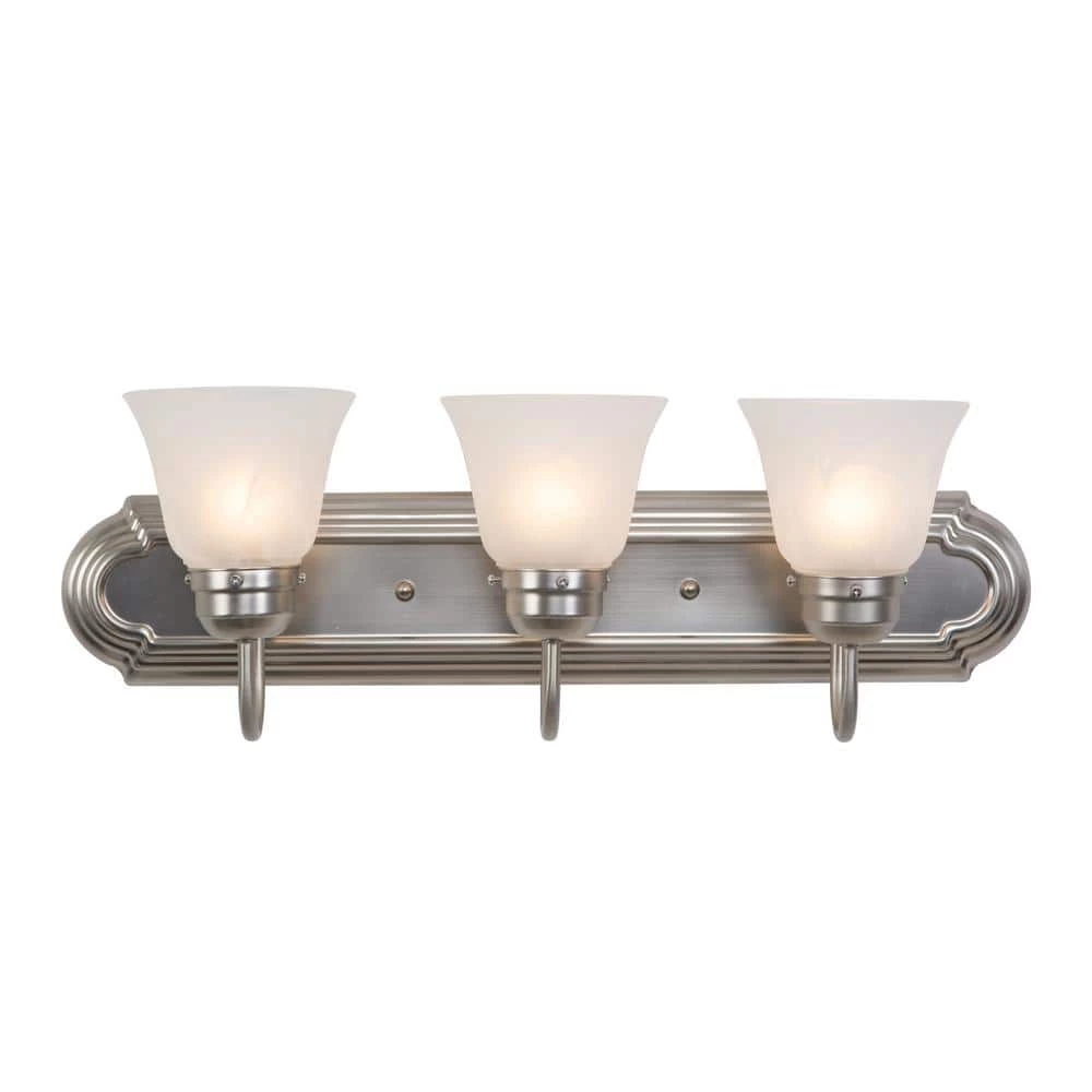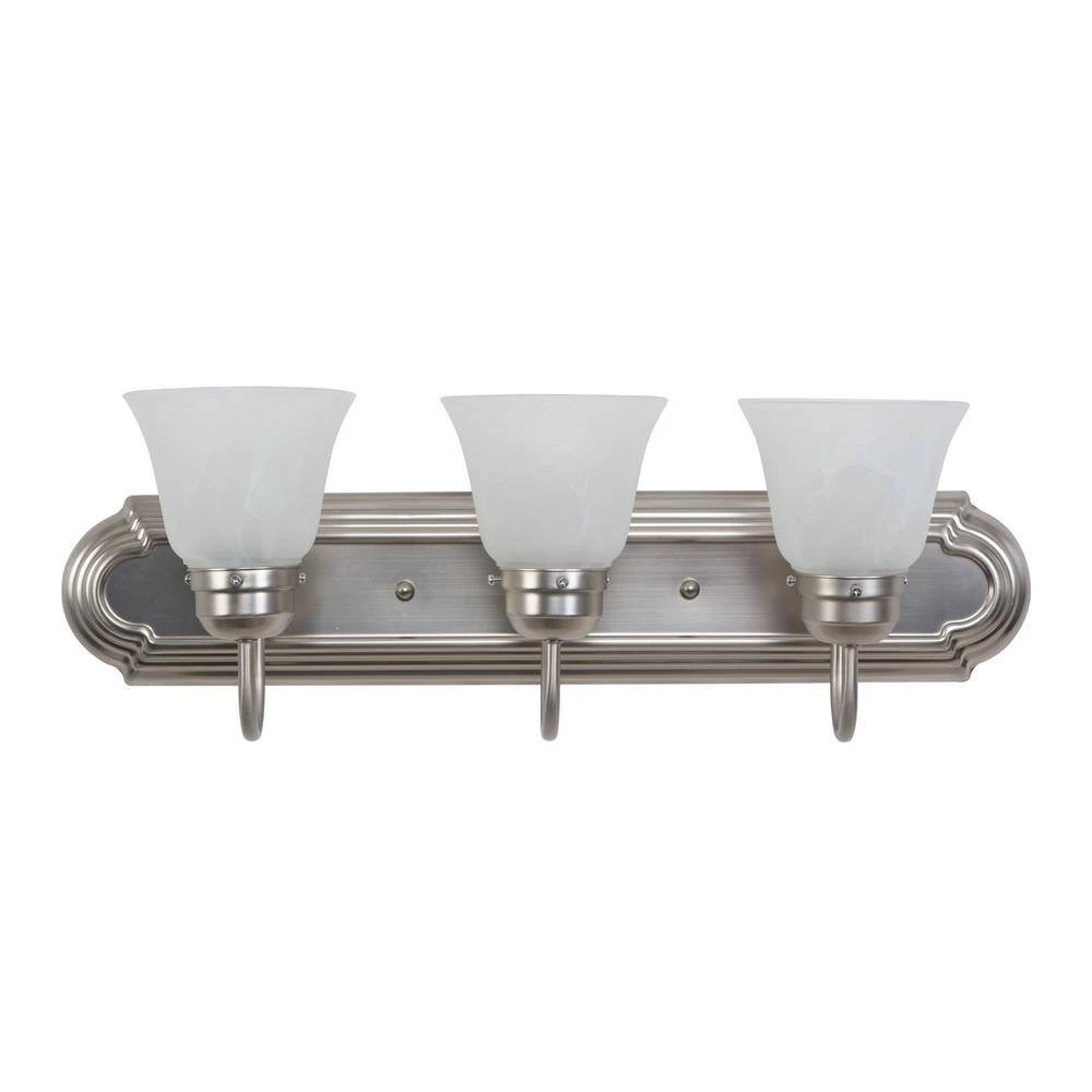 The 4993-3SN by Yosemite Home Decor is a beautiful fixture. Its Satin Nickel frame curves upwards to firmly support the lights. The incandescent bulbs are wrapped in a soft Alabaster glass covering allowing light to brightly flood your room. This piece is also available with two (4992-2SN) or four (4994-4SN) lights to accommodate any bathroom vanity size. Another option for this item is a Dark Brown frame and two (4992-2DB), three (4993-3DB) or four (4994-4DB) lights. Three medium-based, 60-Watt incandescent bulbs are required for use (bulbs not included).
