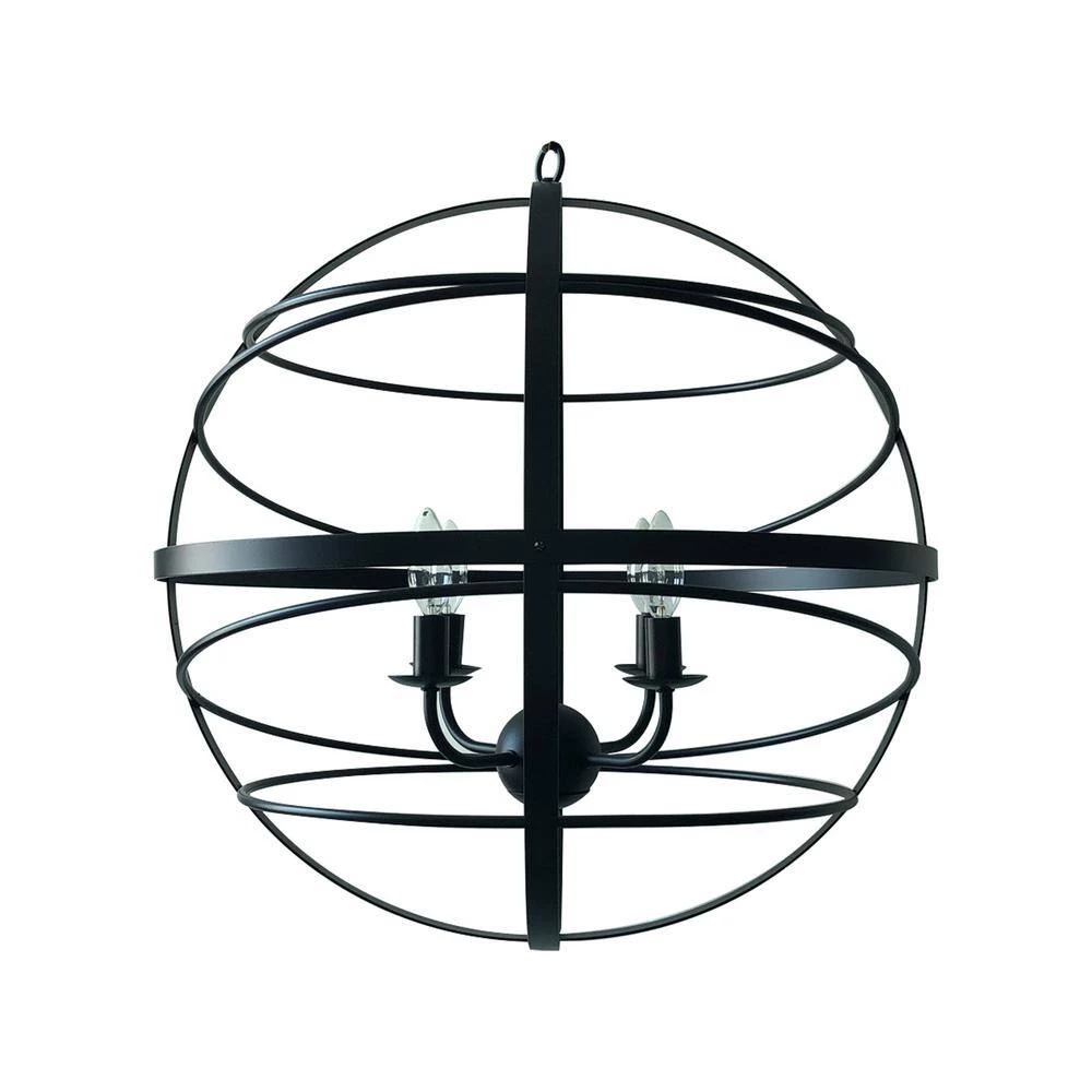 This 4-Light Orb Chandelier features a clean modern design. The frame blends together contemporary metalwork and a classic black matte finish to create a distinctive contrasting feature for your space. The 22 in. W globe is decorated with 4 bands which a placed at irregular angles to create visual interest. The chain it hangs on can be adjusted to varying heights by simply removing the desired number of links. This chandelier is medium in size and would be perfect for both living room and in place of a pendant in the kitchen or dining room area.